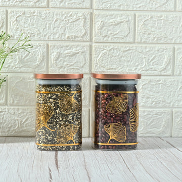 Borosilicate Glass Jar 700 ML Set of 2 in One Tray for Kitchen