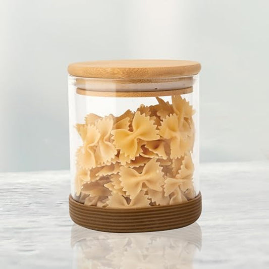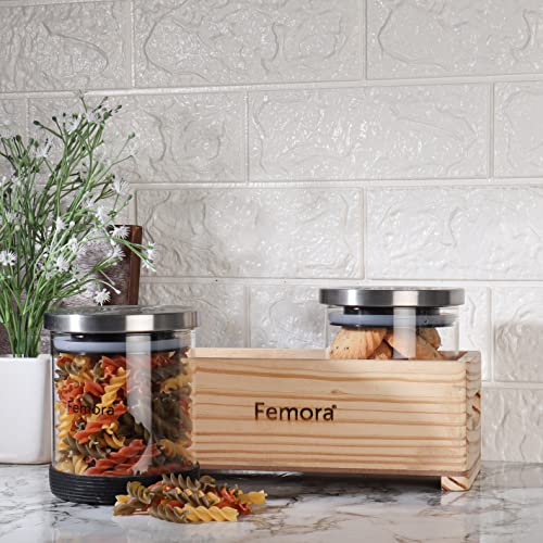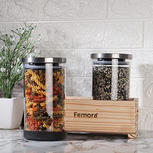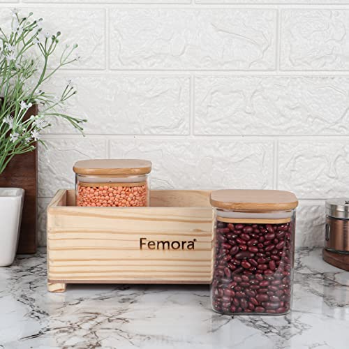 Kitchen Storage Jars Borosilicate Glass With Wooden Lid Silicon Bottom Base Air Tight Jar Femora