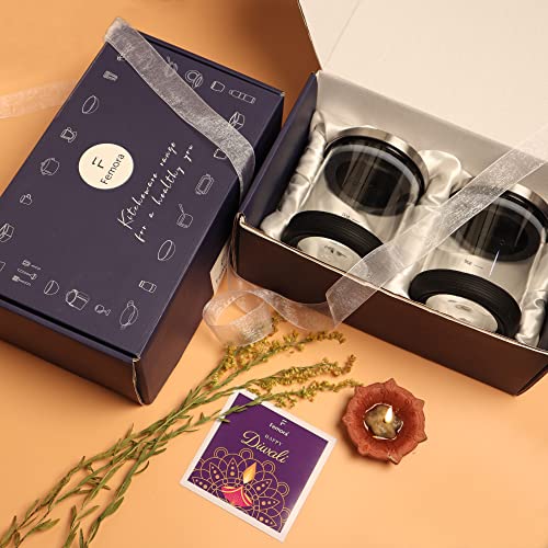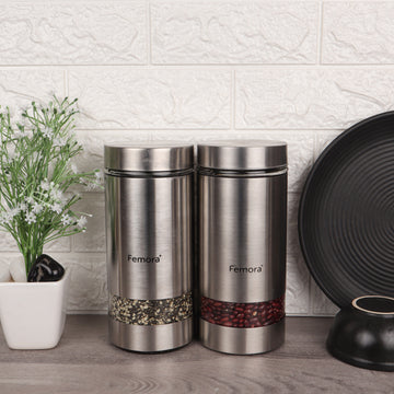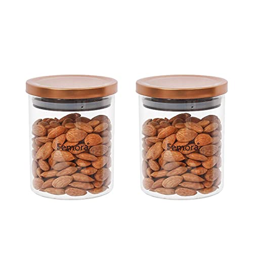 Borosilicate Glass Kitchen Storage Jar with Air Tight Steel Lid, 2 Pcs, 600 Ml, Femora