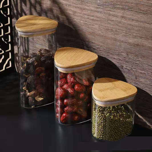 Kitchen Storage Jars Borosilicate Glass With Wooden Lid Air Tight Jar Femora