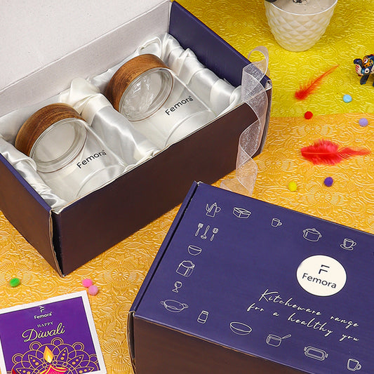 Borosilicate Glass Jar 500 ML- 2 pcs with Wooden Tray