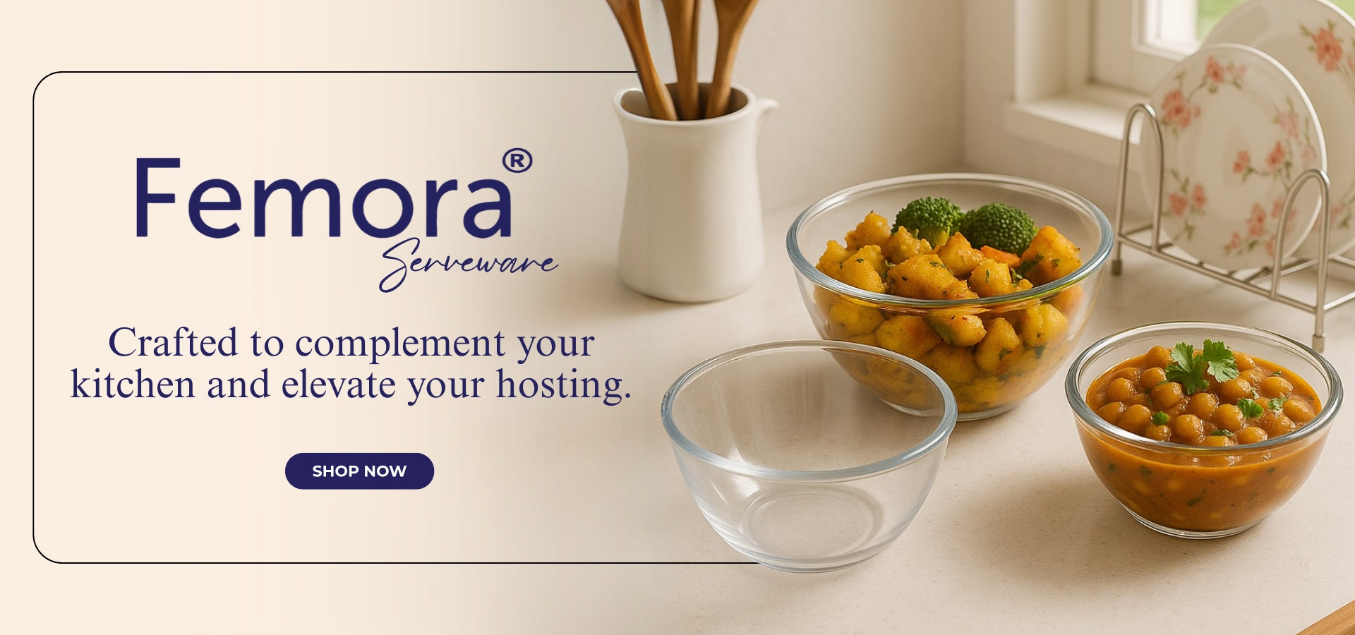 Borosilicate Glass Microwave Safe Casserole with Glass Lid, 1 Pc, 2 Pcs, 3 Pcs, Femora