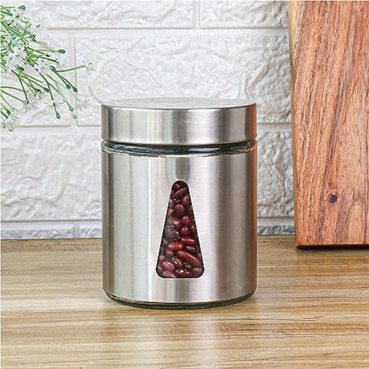 Glass Jar, Kitchen Storage Jar, Round Jars, Airtight Steel Lid,