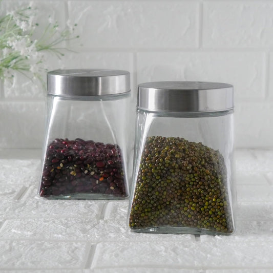 Glass Jar, Kitchen Storage Jar, Squre Jars, Airtight Steel Lid,