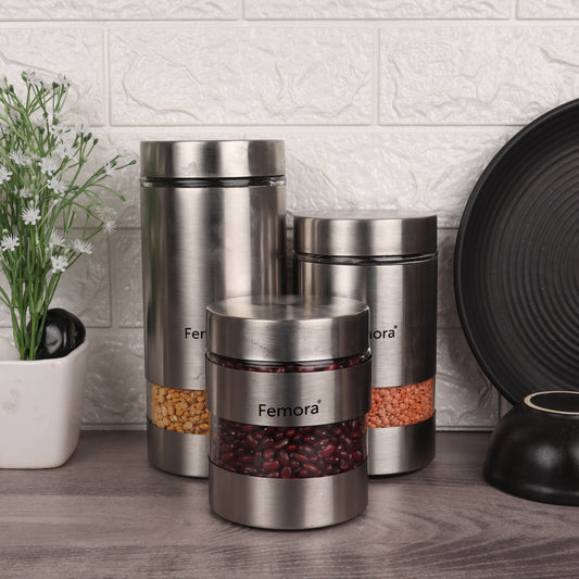 Kitchen Storage Jars Steel Finish With See Through Window Jar Femora