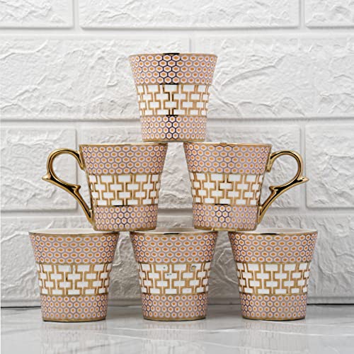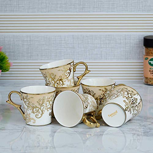 Ceramic Fine Premium Gold Tea Cup Set of 6, 200 ML, Femora