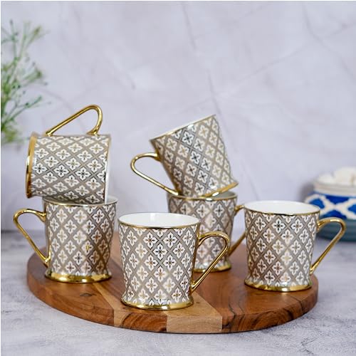 Premium Ceramic Gold Mosaic Coffee & Tea Cup Set of 6, 180 ML, Femora