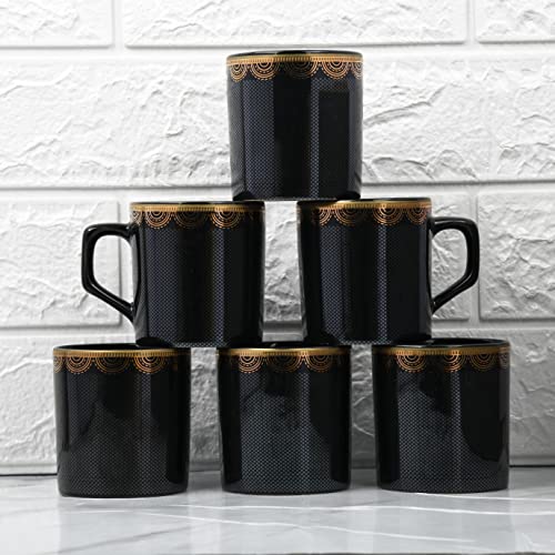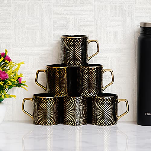 Premium Ceramic Glitter Dot Pattern With Golden Arch Coffee & Tea Cup Set of 6, 180 ML, Femora