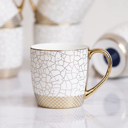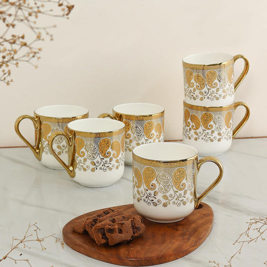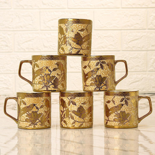 Premium Ceramic Weaver Love Gold Coffee & Tea Cup Set of 6, 180 ML, Femora