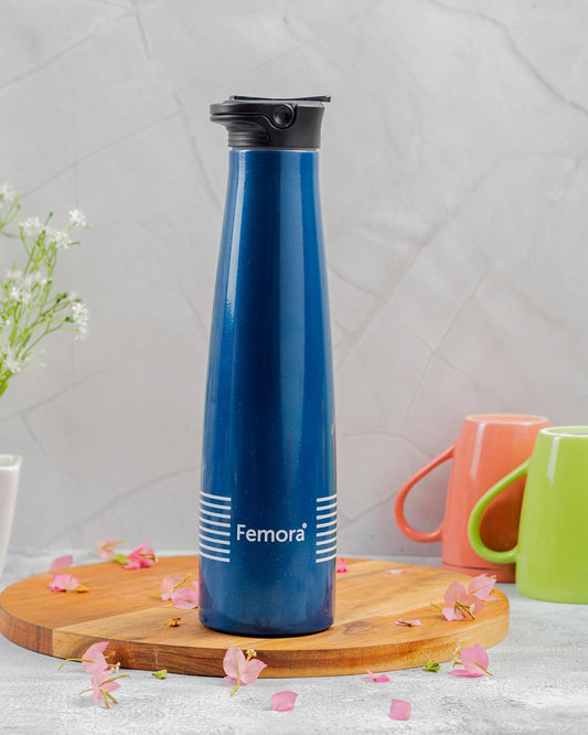 Femora Sleeko Stainless Steel Double Insulated Water Bottle with Sipper Cap, 700 ML, (Thermo Steel)