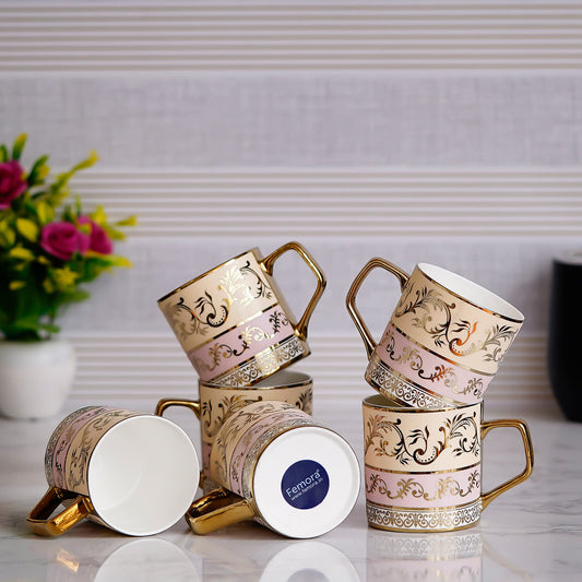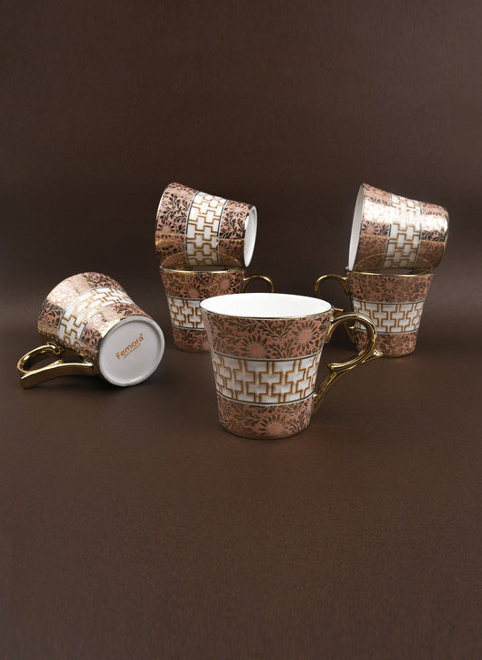 Premium Ceramic Pink Gold Coffee & Tea Cup Set of 6, 155 ML, Femora