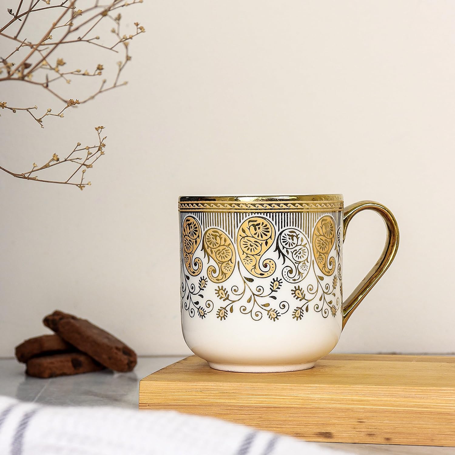 Premium Ceramic Gold Coffee & Tea Cup Set of 6, 180 ML, Femora