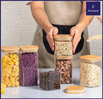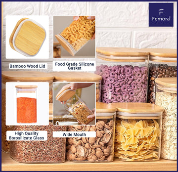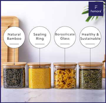 Kitchen Storage Jars Borosilicate Glass With Wooden Lid Air Tight Jar Femora