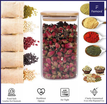 Material :- Borosilicate Glass Jars Lid: Wooden Air Tight Lid.