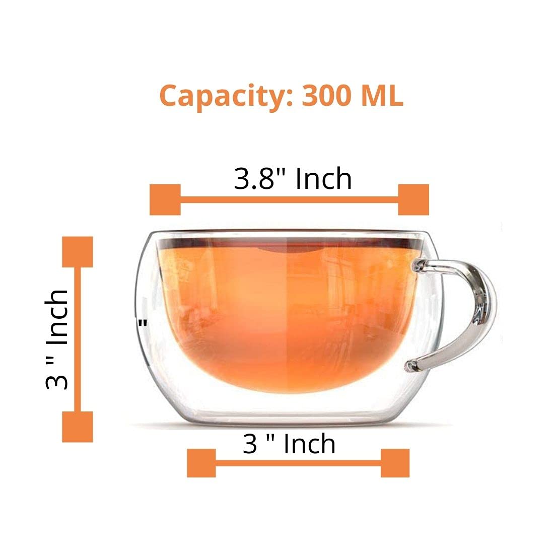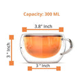 Borosilicate Glass Double Wall Wide Tea Cup, Transparent, 300 ml