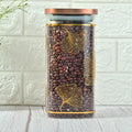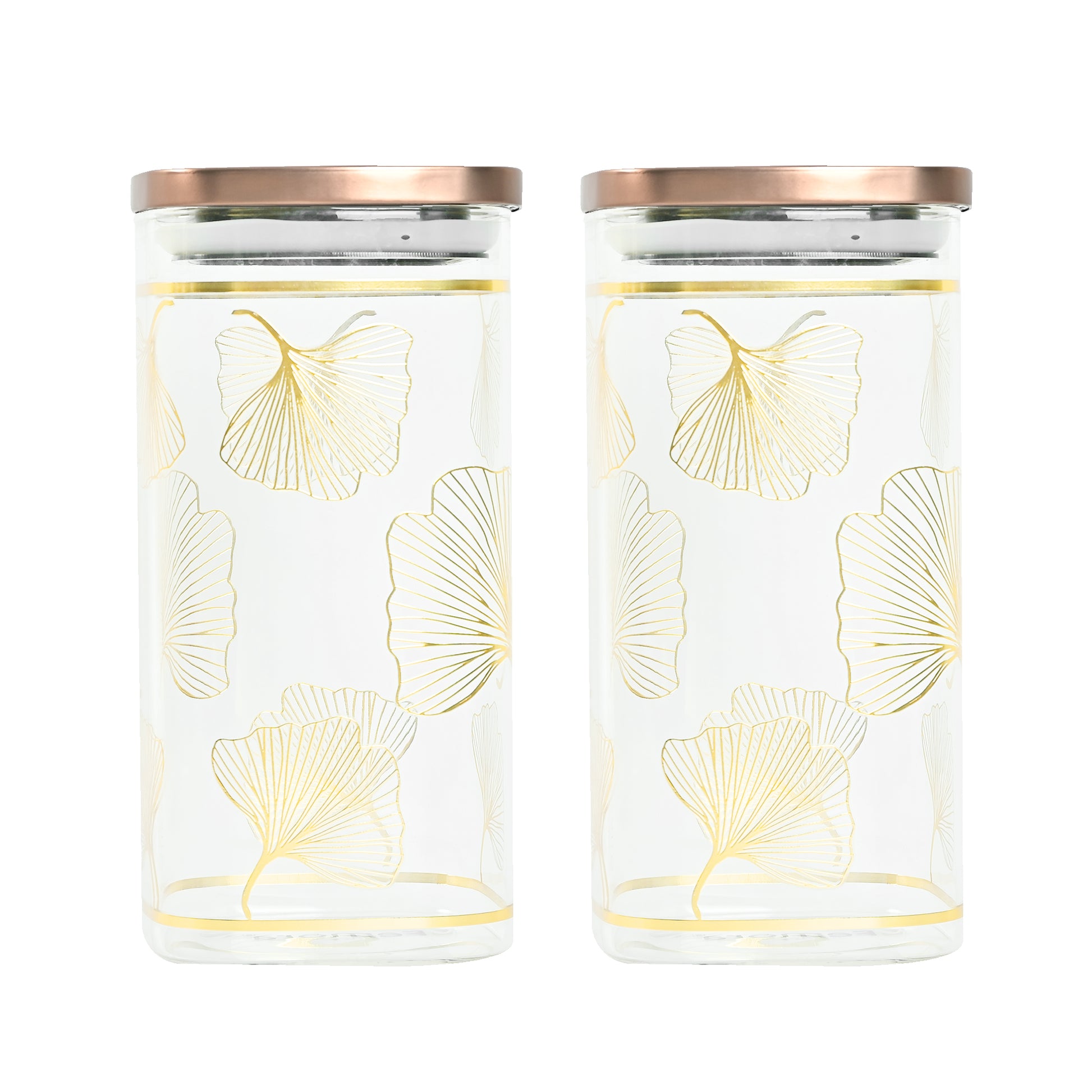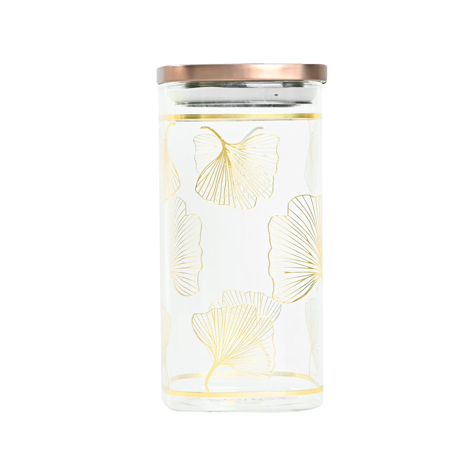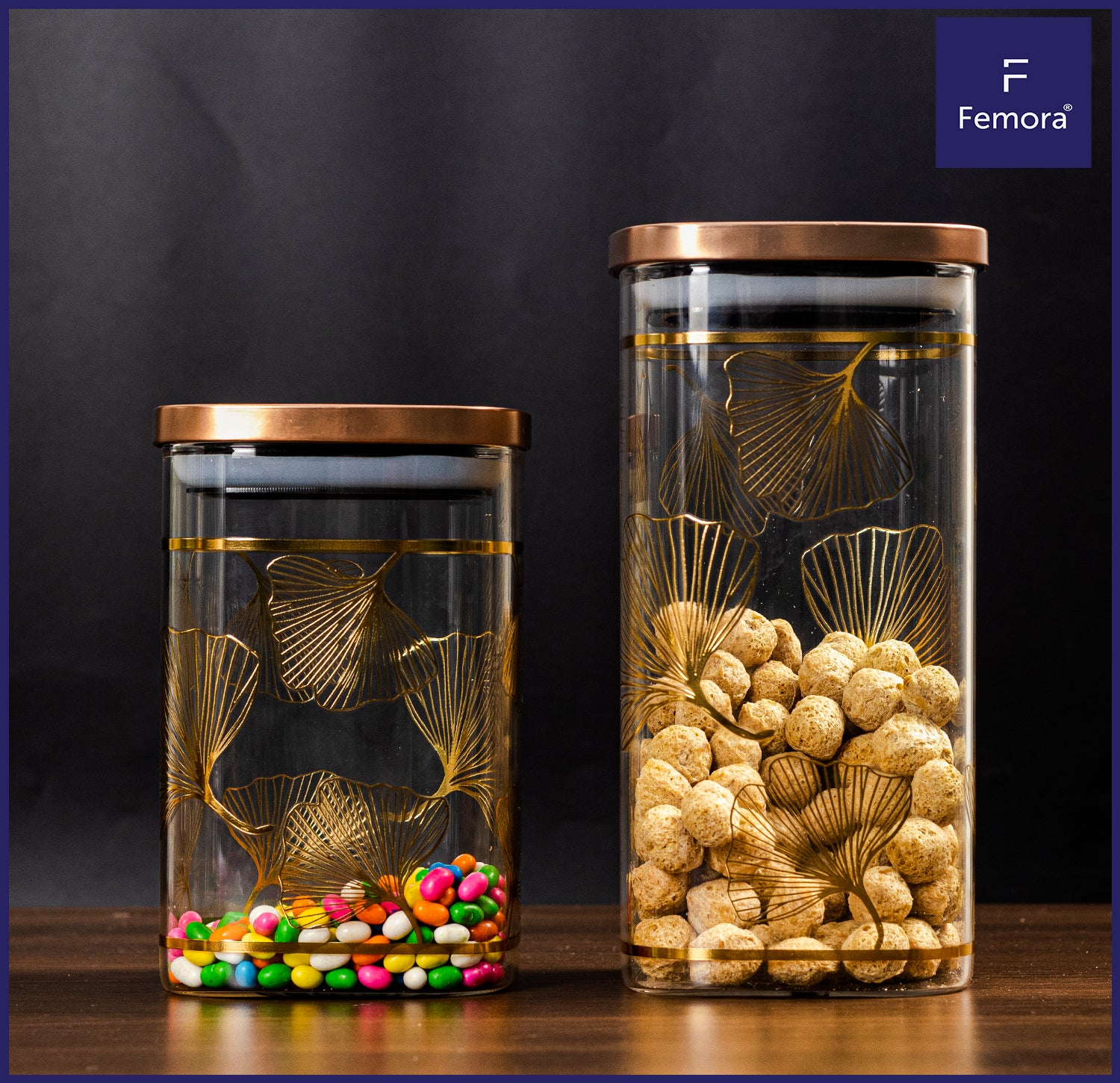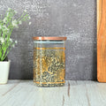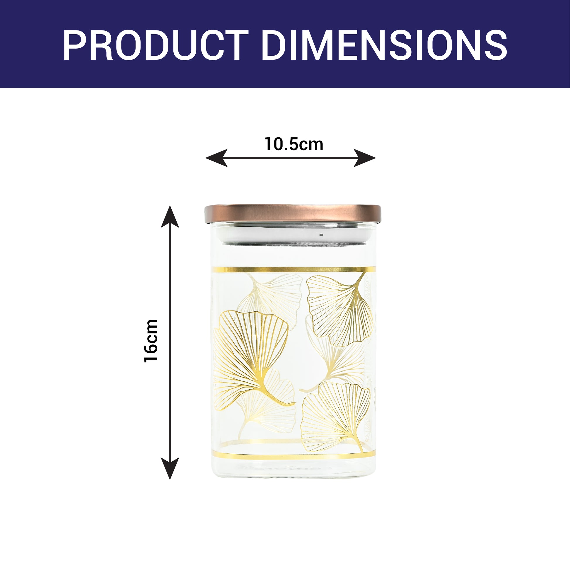 Borosilicate Glass Square Gold Print Kitchen Storage Jar, Airtight Steel Lid, Femora