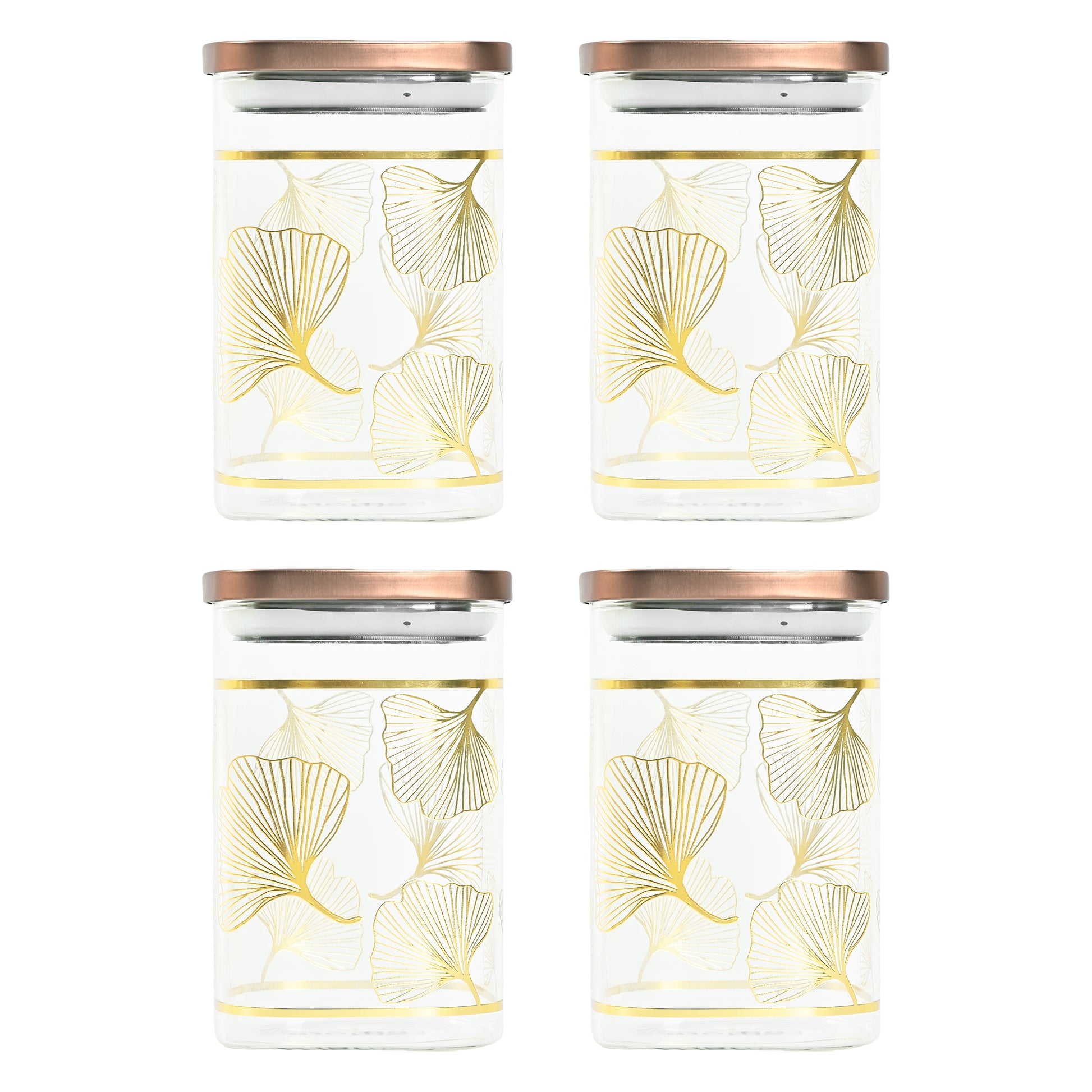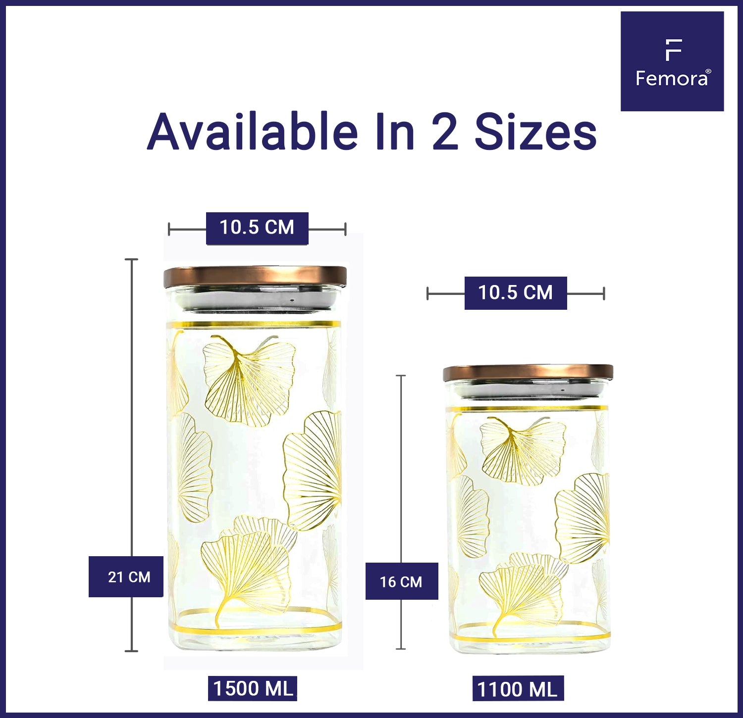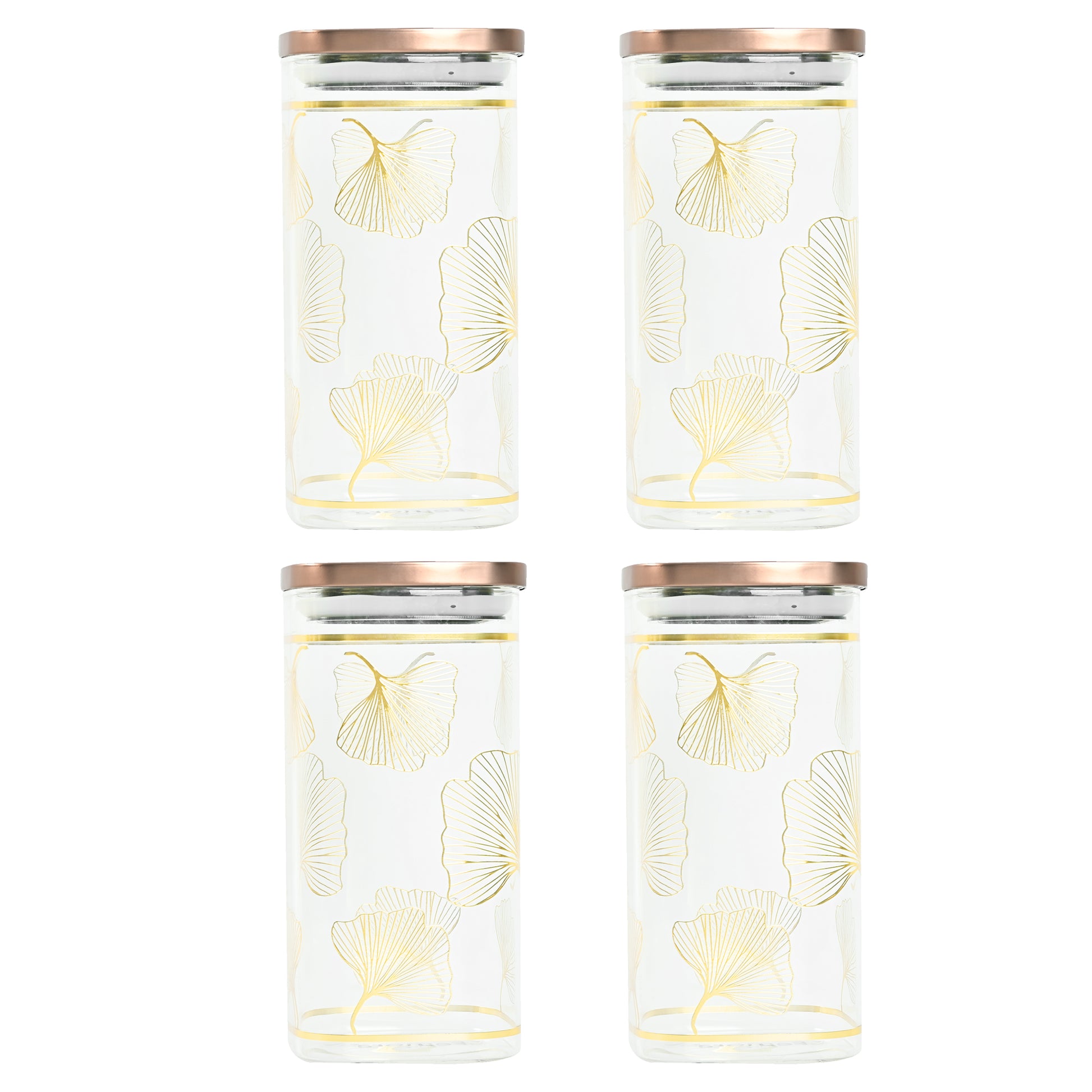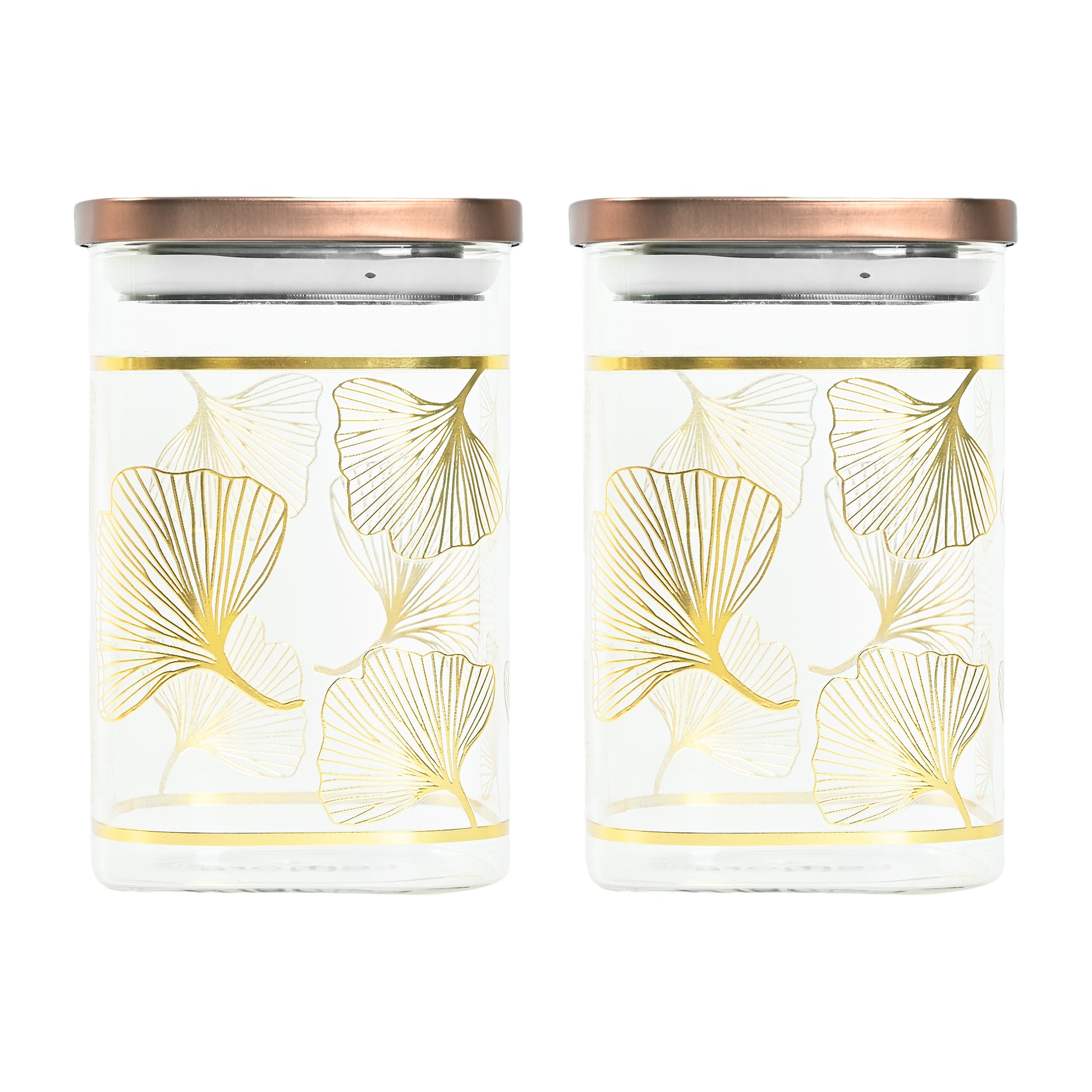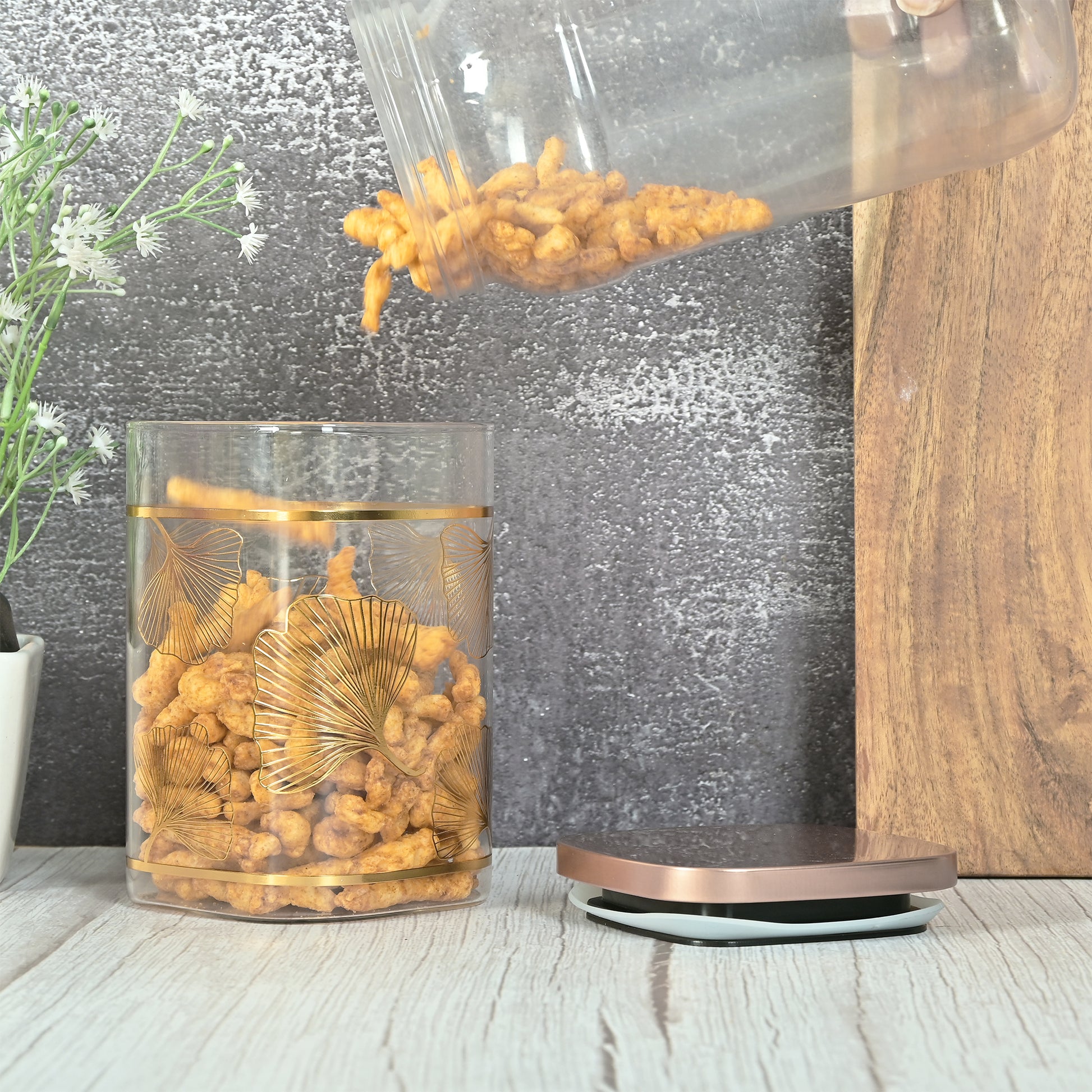 Borosilicate Glass Square Gold Print Kitchen Storage Jar, Airtight Steel Lid, Femora