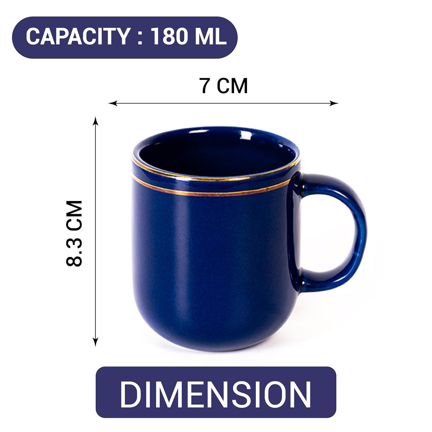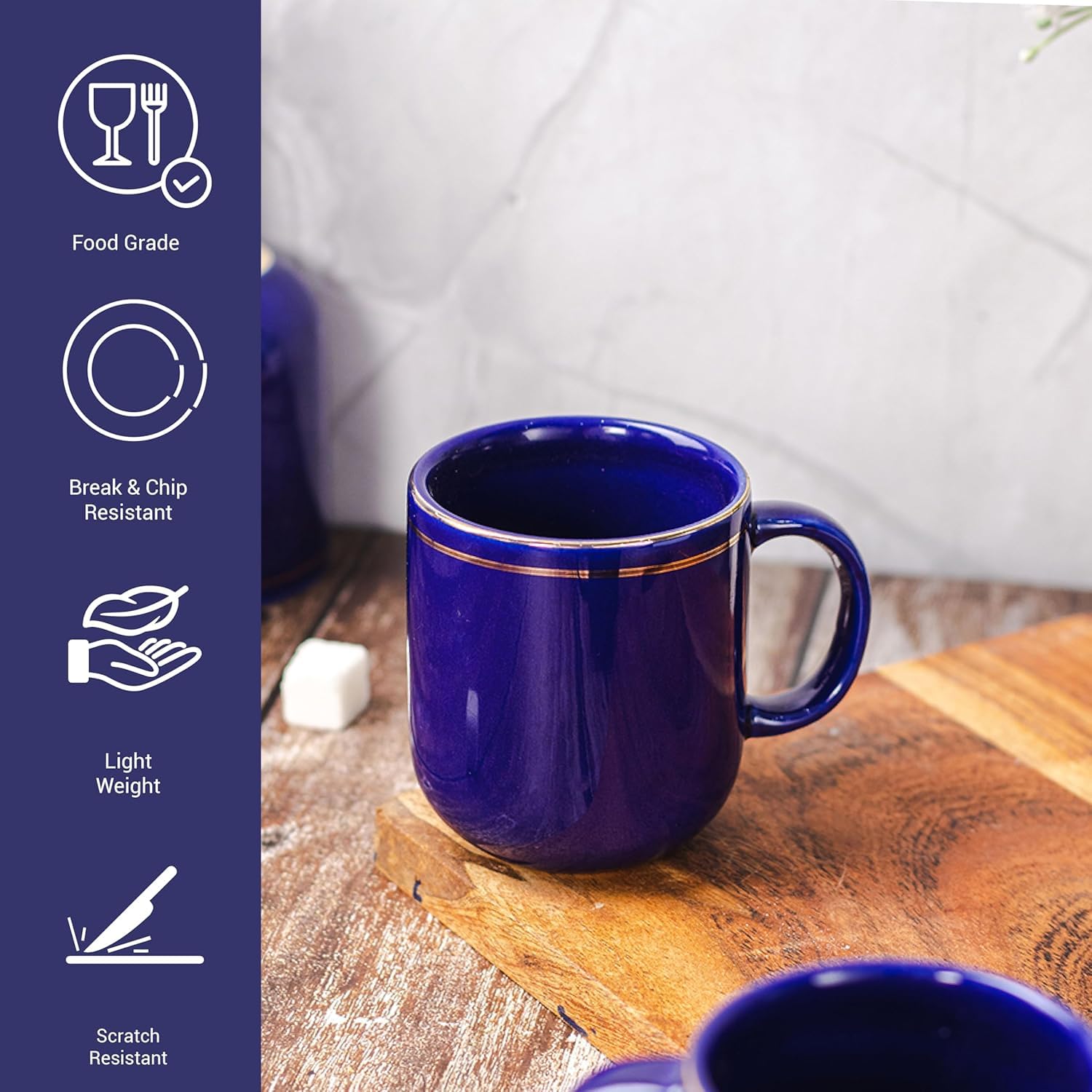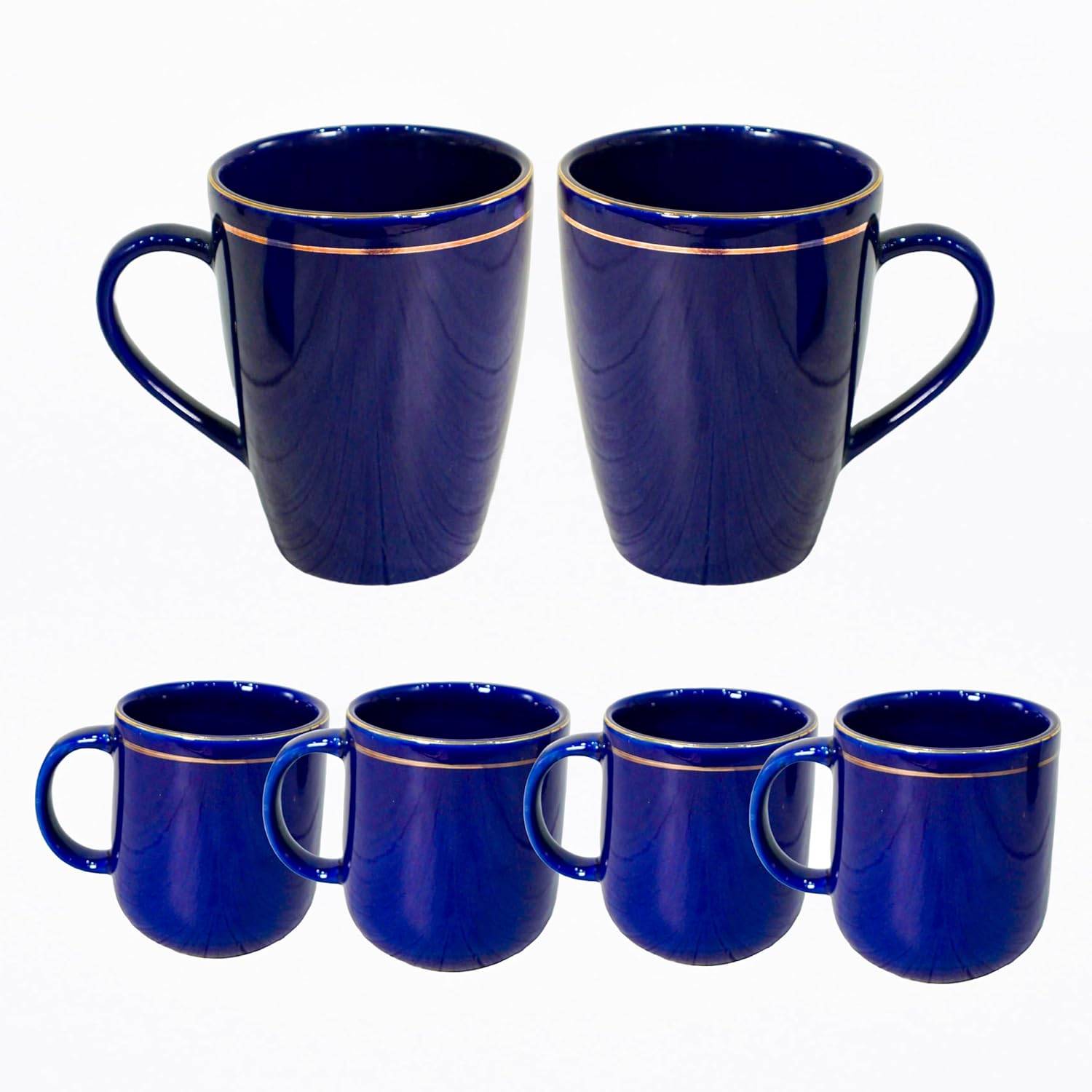 Ceramic Coffee Mug 2 Pcs (360ml) & Tea Cup Set 4 Pcs (180ml) Royal Blue
