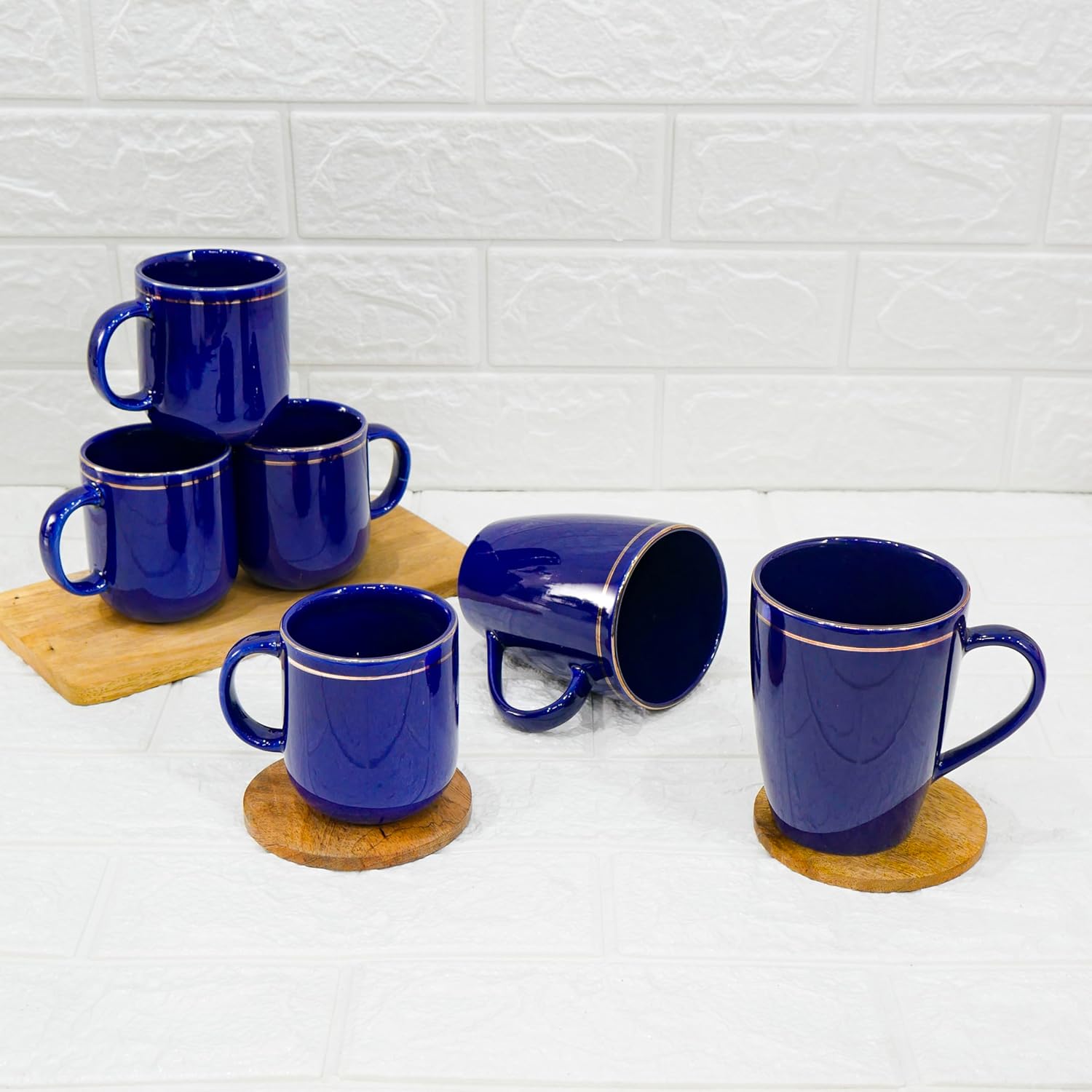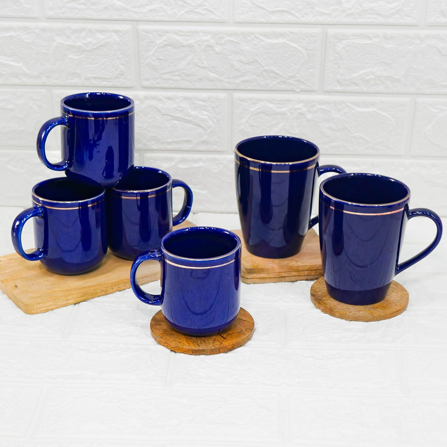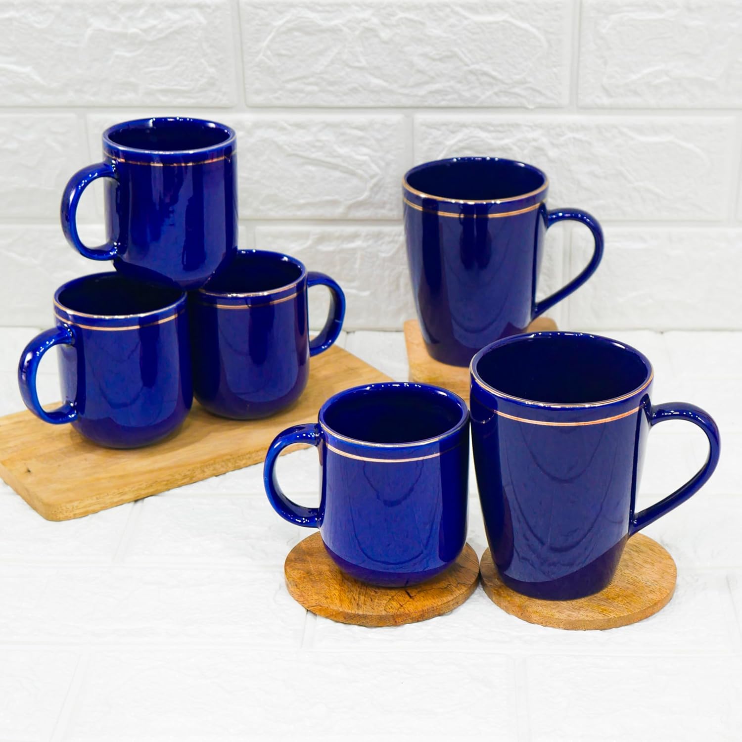 Ceramic Coffee Mug 2 Pcs (360ml) & Tea Cup Set 4 Pcs (180ml) Royal Blue