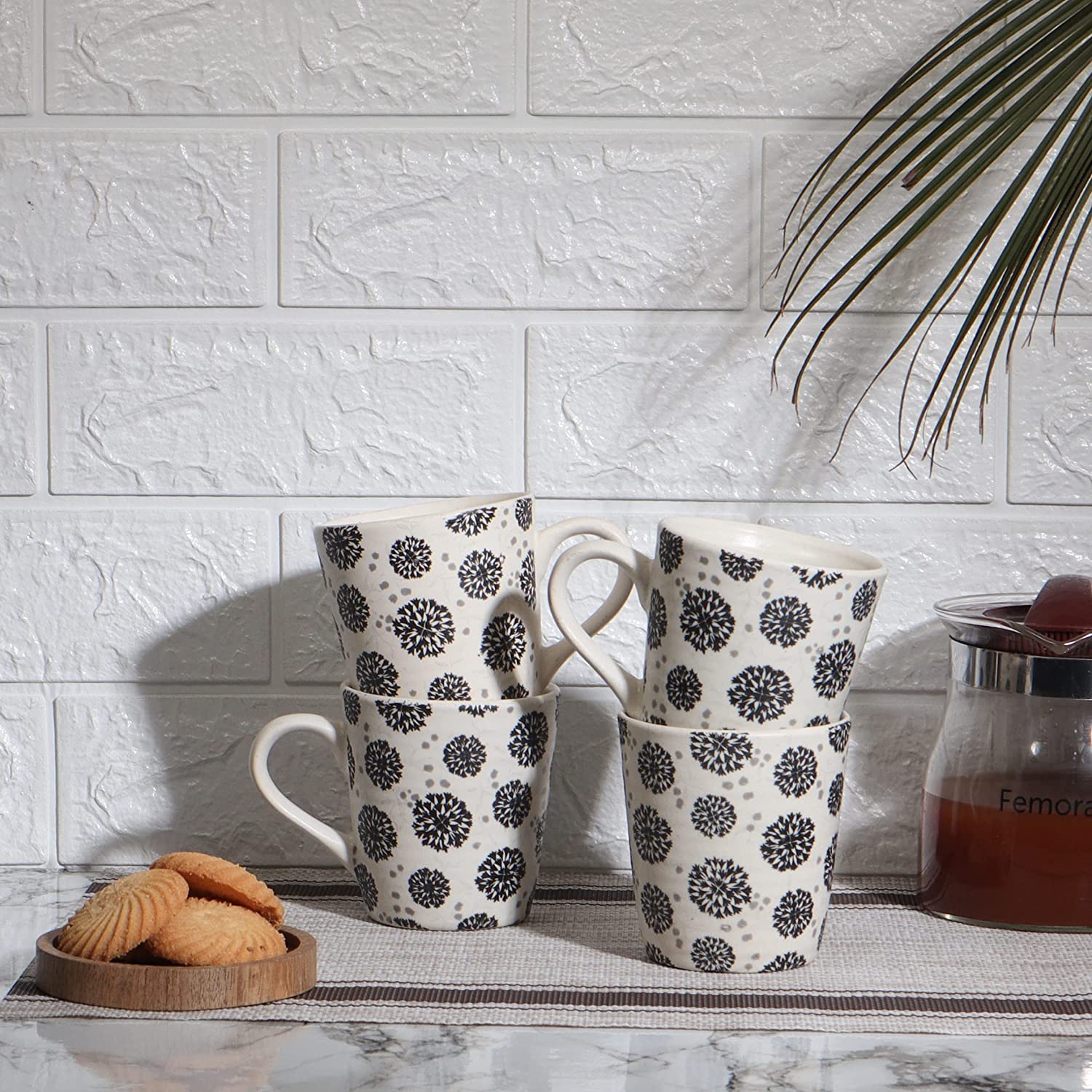 Ceramic Decal Stoneware Floral Cracker Coffee Mug, 320 ML, Femora