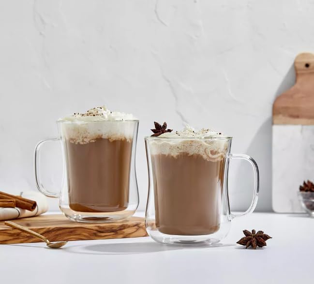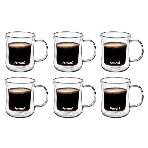Double Wall Coffee Mug 240ml (8 Ounces), Clear Glass with Handle, Insulated Cappuccino, Tea, Latte Cup - Heat Resistant
