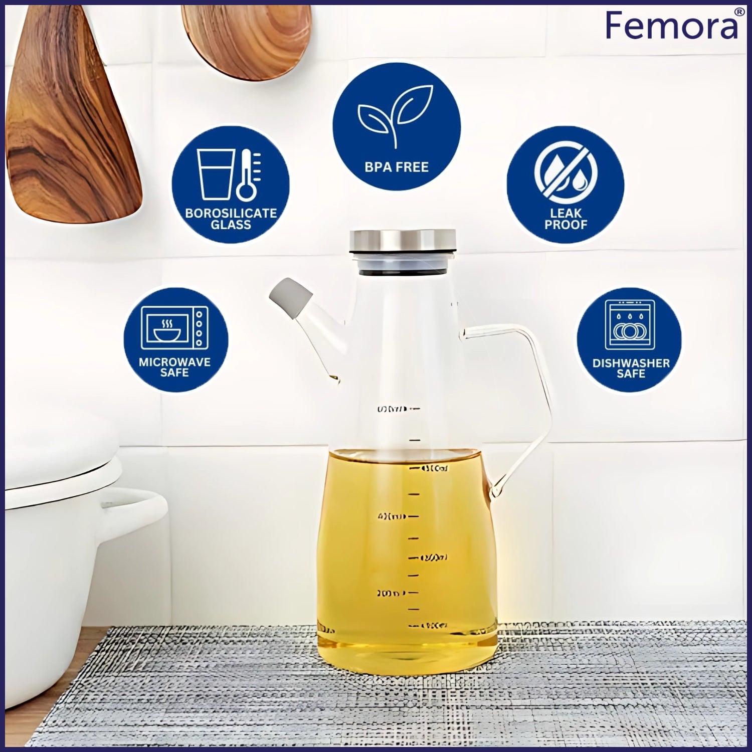 Borosilicate Glass Oil Bottle with Handle & Lid, 650 ML