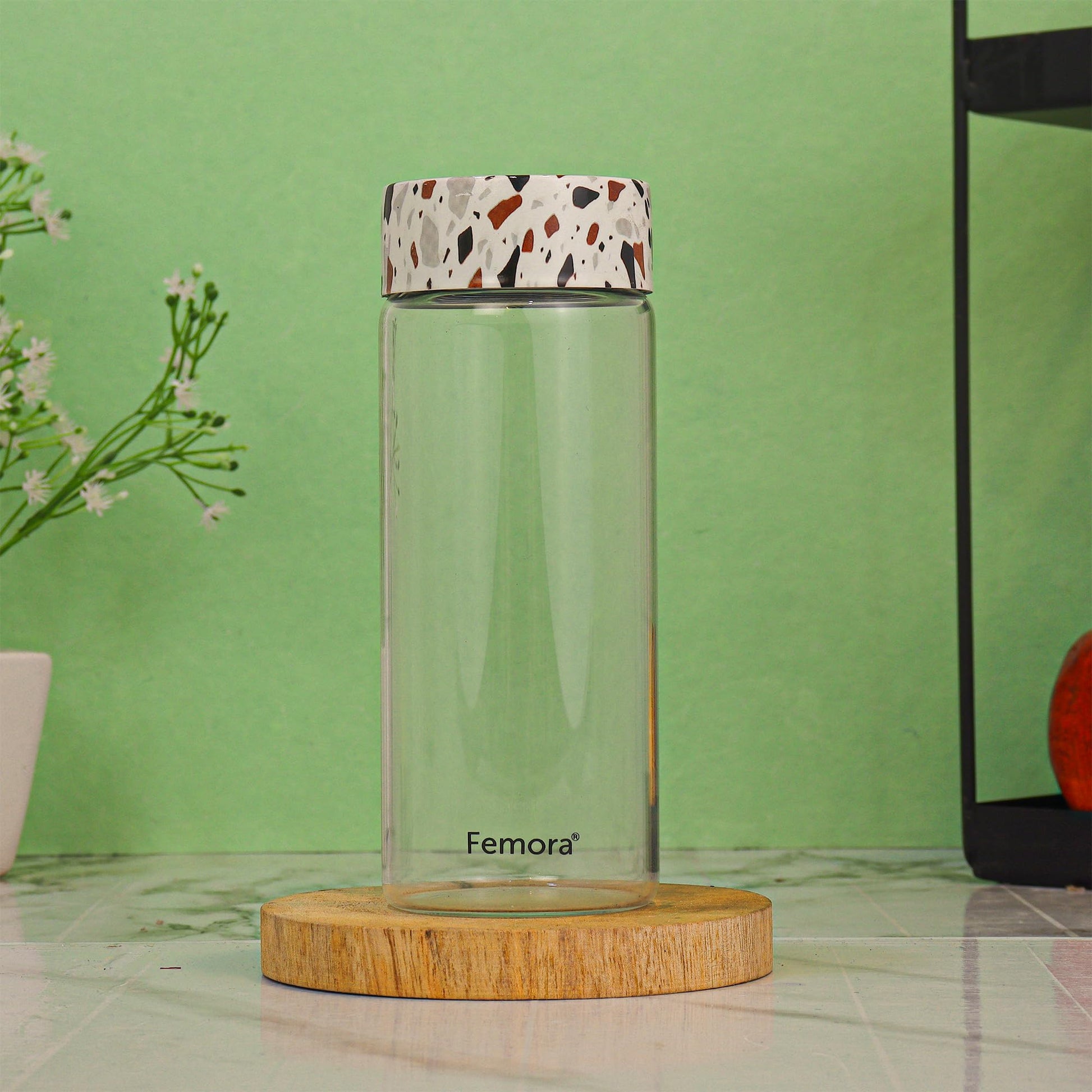 Femora Borosilicate Glass Water Bottle Durability and Elegance Combined, 500ML(1 Pc Set) (Dot Marble)