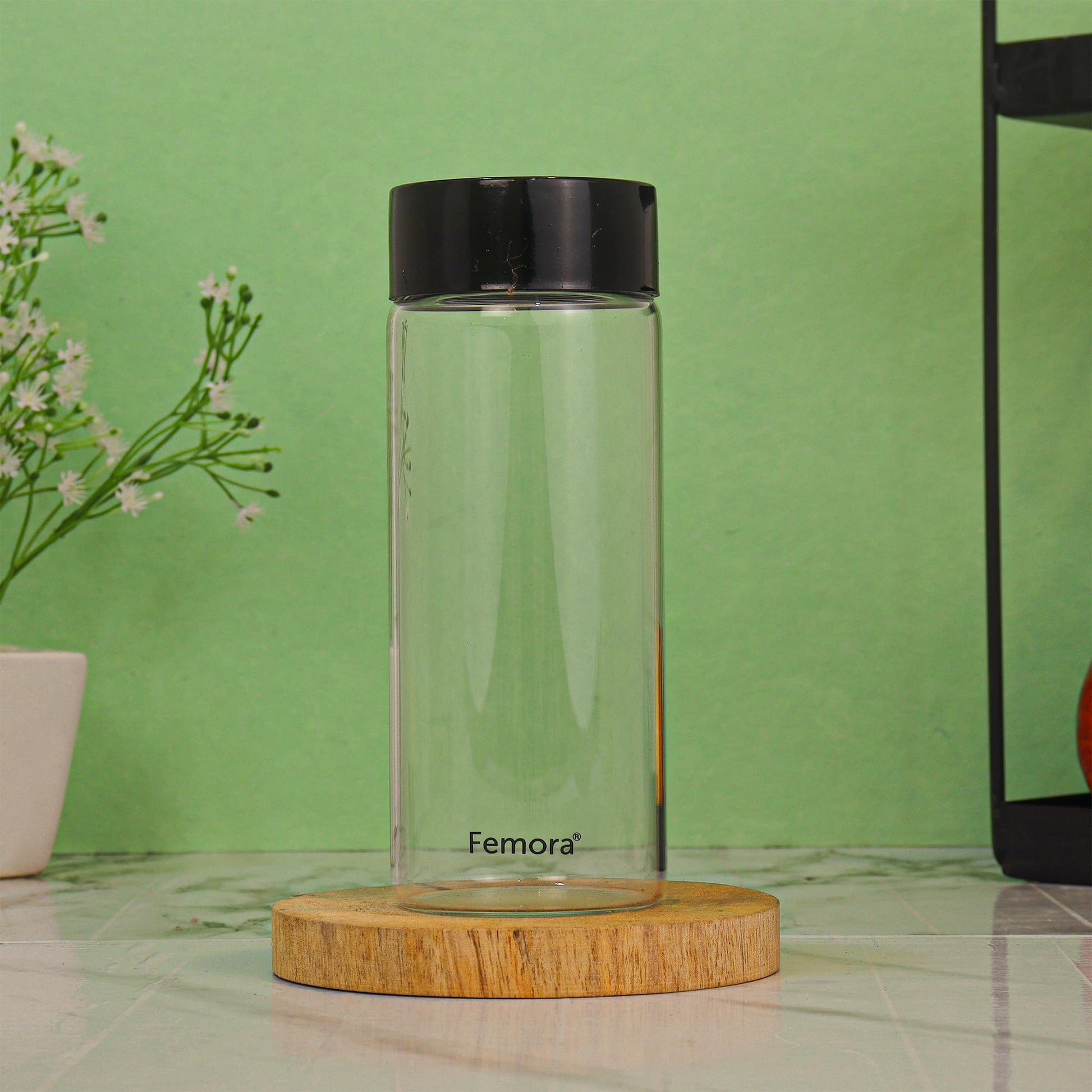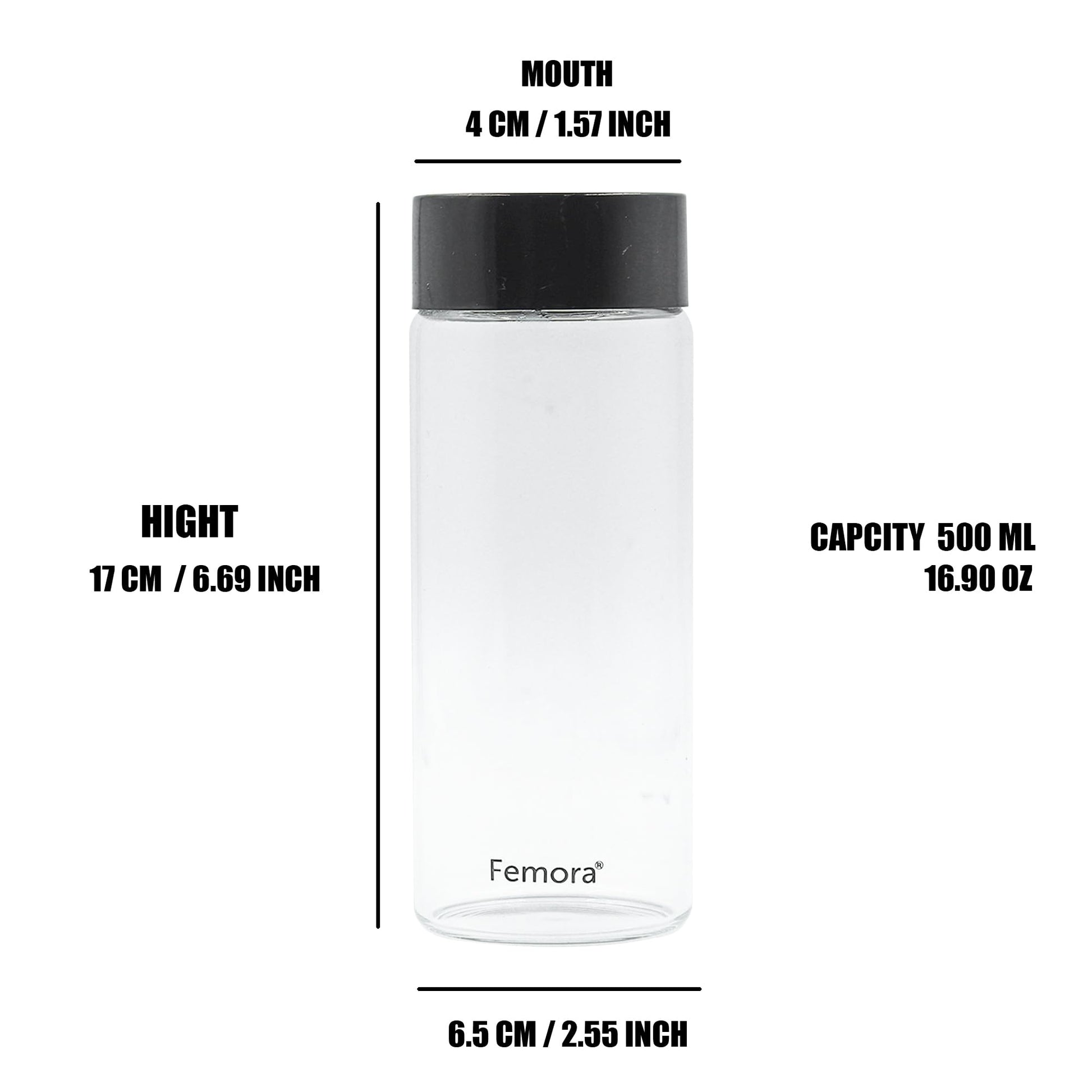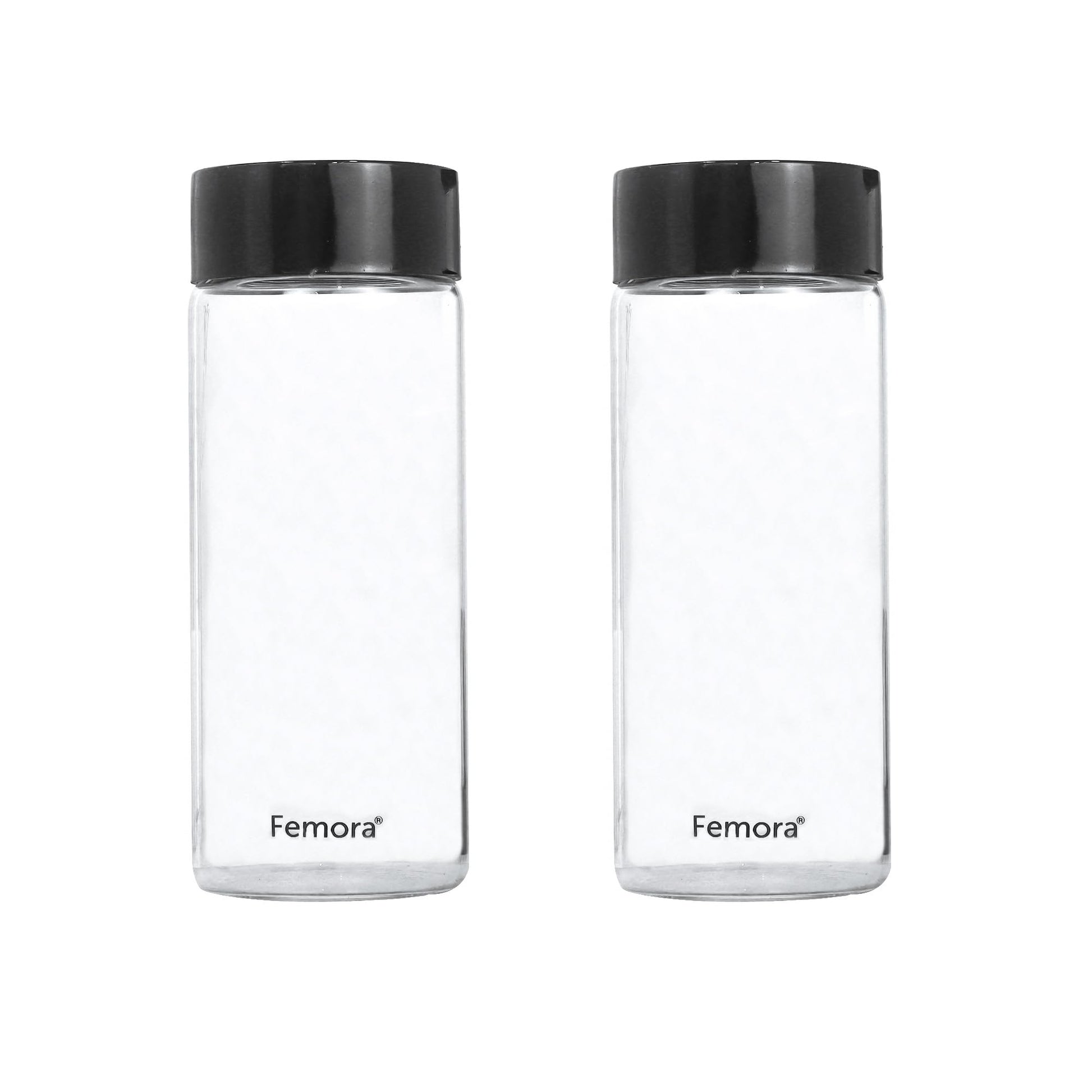Femora Borosilicate Glass Water Bottle Durability and Elegance Combined, 500ML(2 Pc Set) (Black Lid)