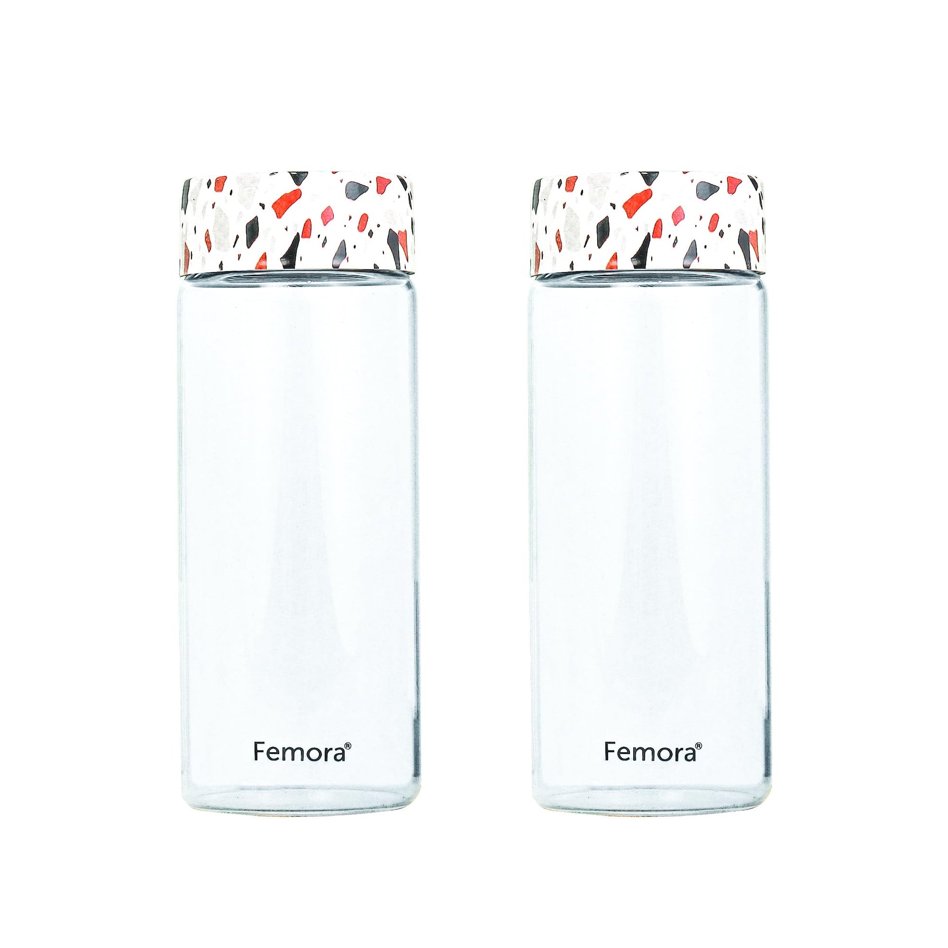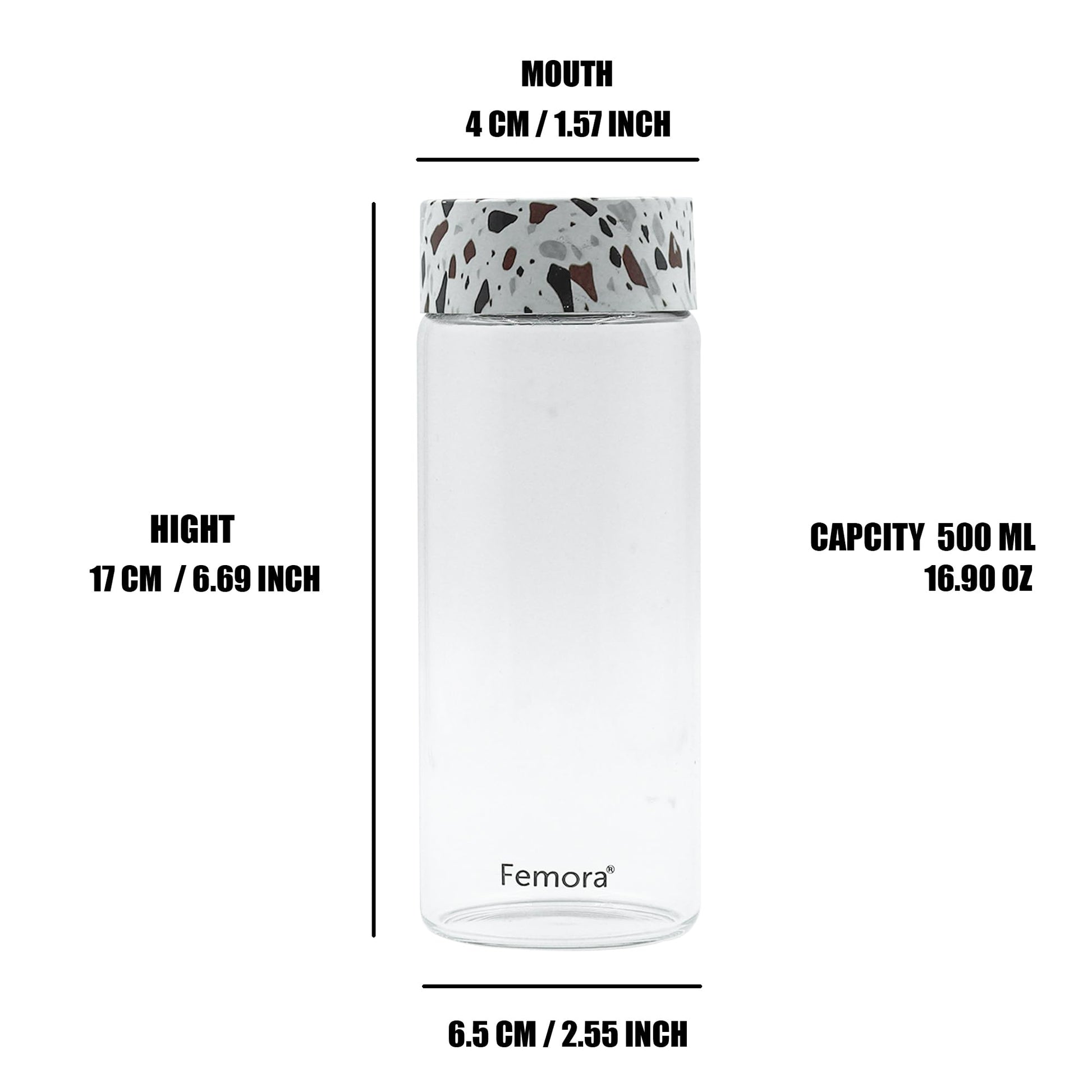 Femora Borosilicate Glass Water Bottle Durability and Elegance Combined, 500ML(2 Pc Set) (Dot Marble)