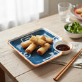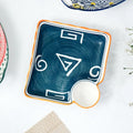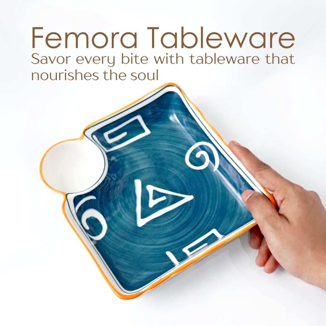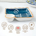 Femora Ceramic Chip and Dip Snack Plate with Dip Section | Microwave & Dishwasher Safe Starter Plates | Perfect for Fries, Momos, Sushi, Kebab (White & Blue)