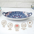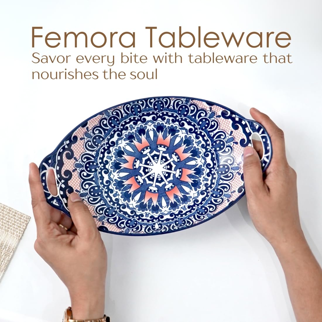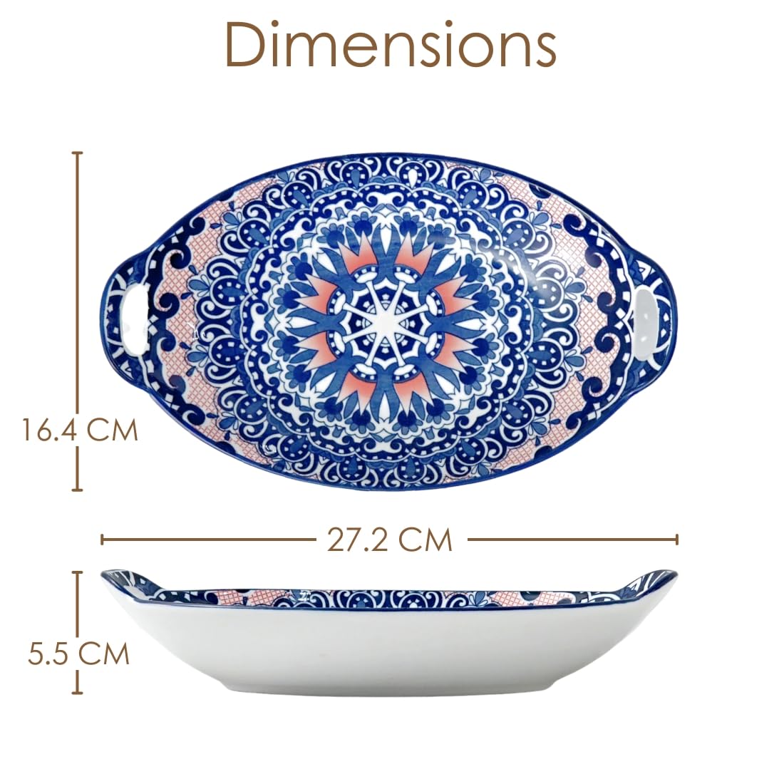 Femora Ceramic Serving Platter with Handles | Blue Mandala Print Microwave & Dishwasher Safe Serveware | Ideal for Gifting, Serving Snacks, Appetizers, Salads, Starters & Noodles