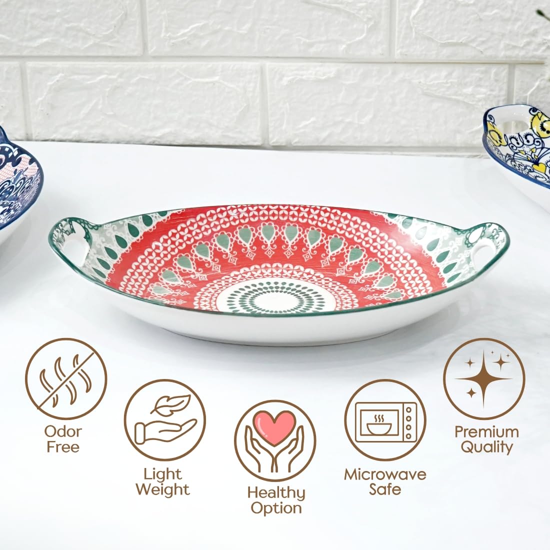 Material : Red & Green Mandala Ceramic Print Microwave & Dishwasher Safe Serveware
