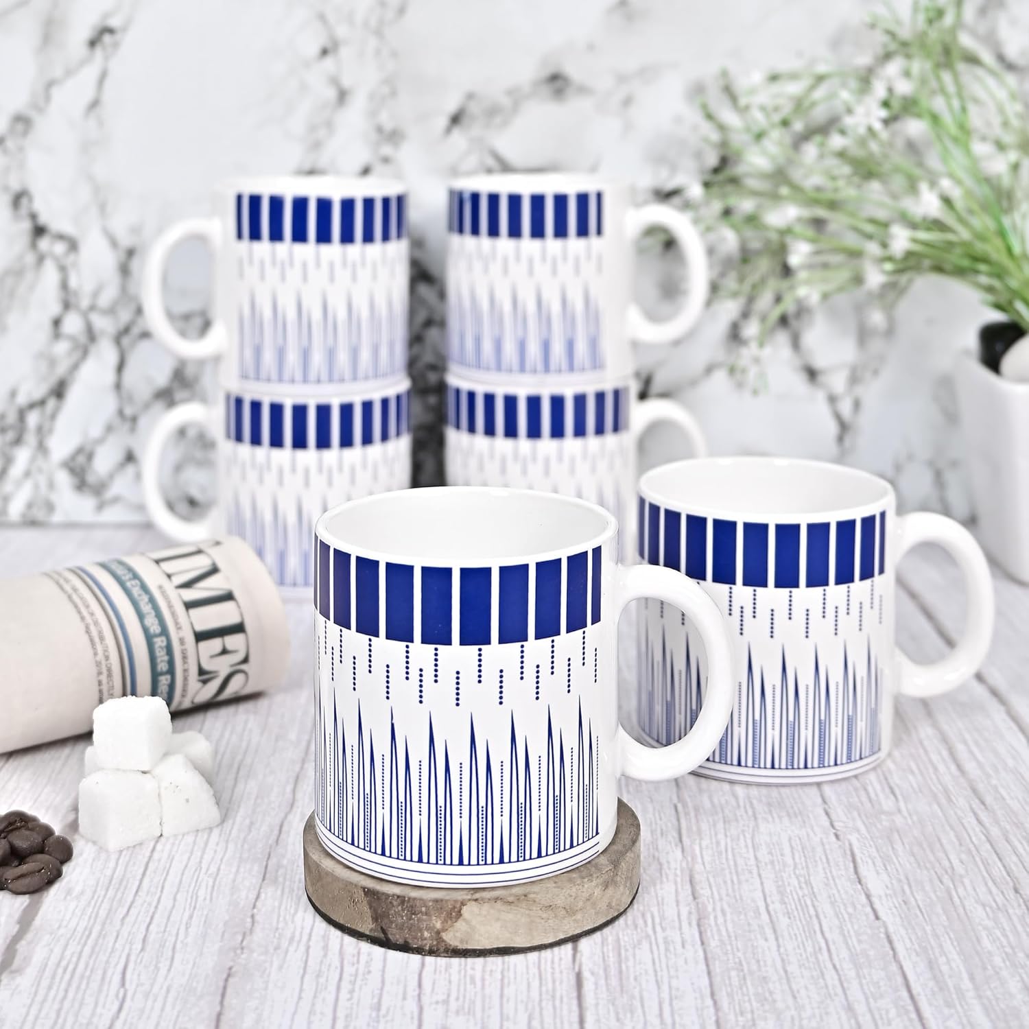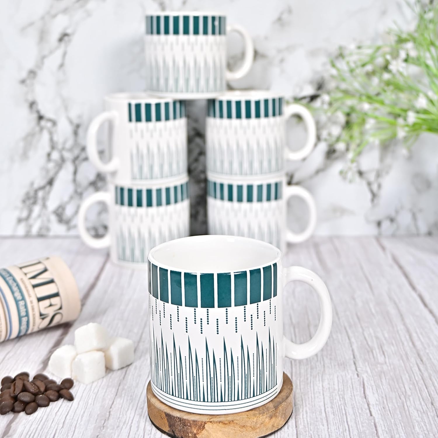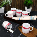 Femora Handcrafted Ceramic Coffee & Tea Cup Set of 6, 180 ML, Linear Design Tea cups
