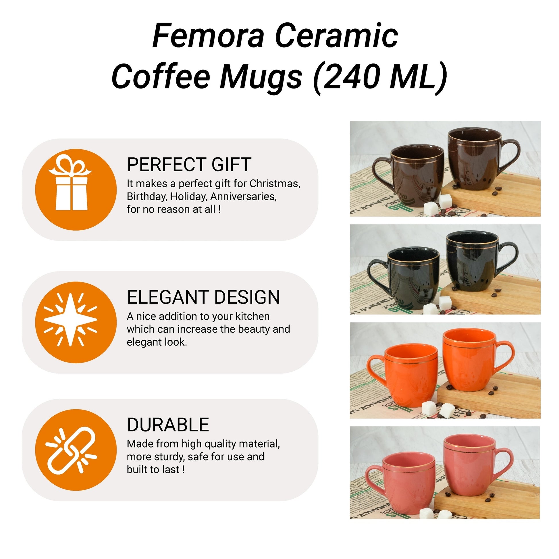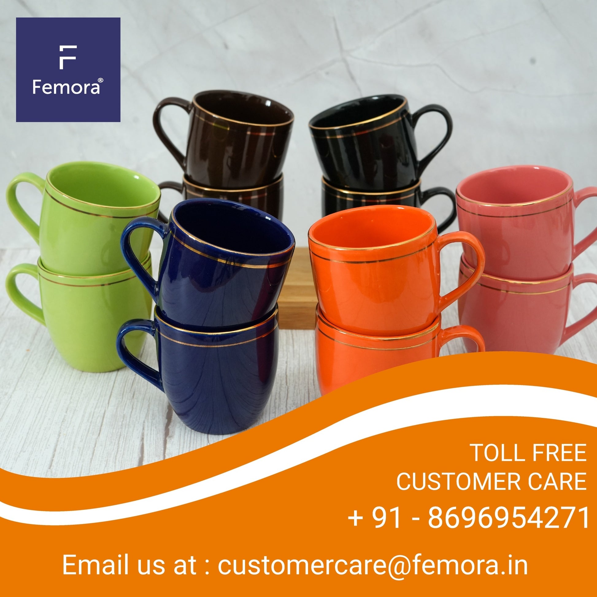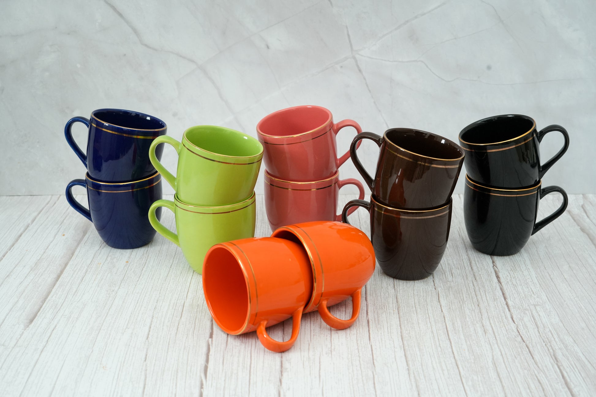 Femora India Multicolor Ceramic Coffee Mugs, Tea Mugs, Ceramic Tea Cups (240 ml) - 6 Pcs Set