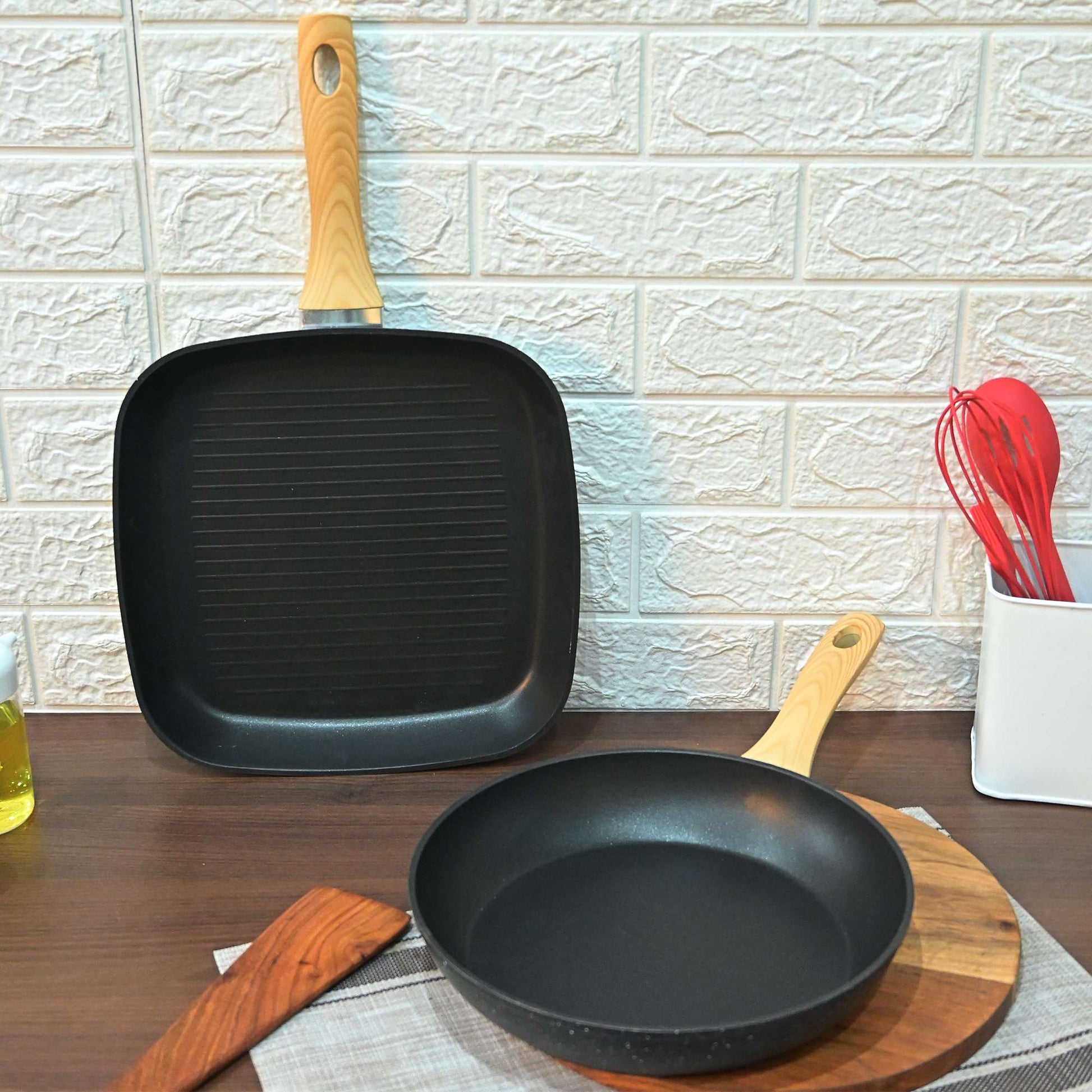 Femora Set of 2 Nonstick Aluminum Cookware Set |Forged Frypan 26 CM |Forged Square Grill pan 28*28 CM