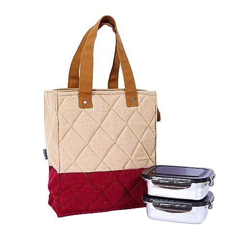 Stainless Steel Lunch Box Maroon Canvas Bag Femora, 350 ML, 2 Pcs