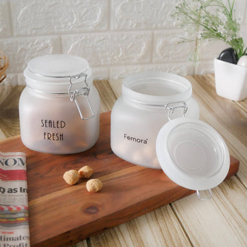Femora Frost Glass Jar, Kitchen Storage Jar, Square Jars Airtight Lid