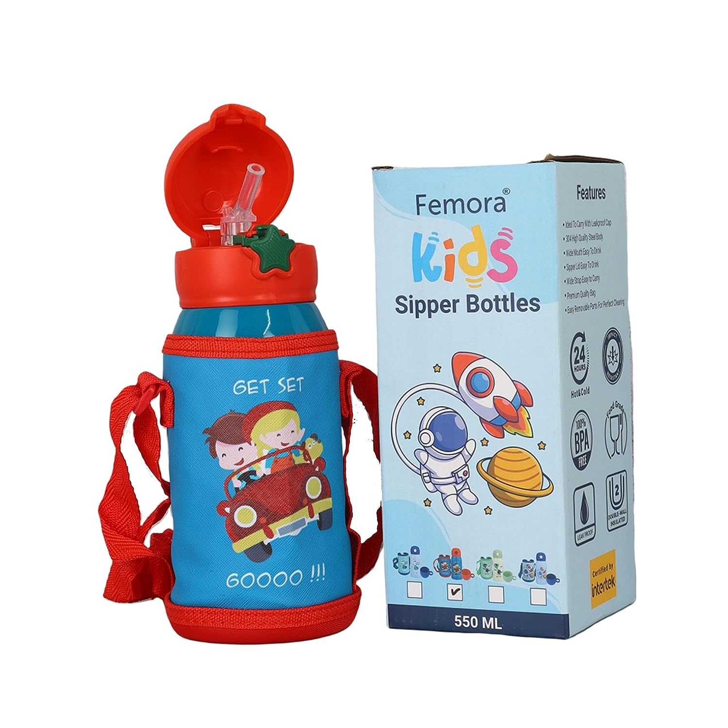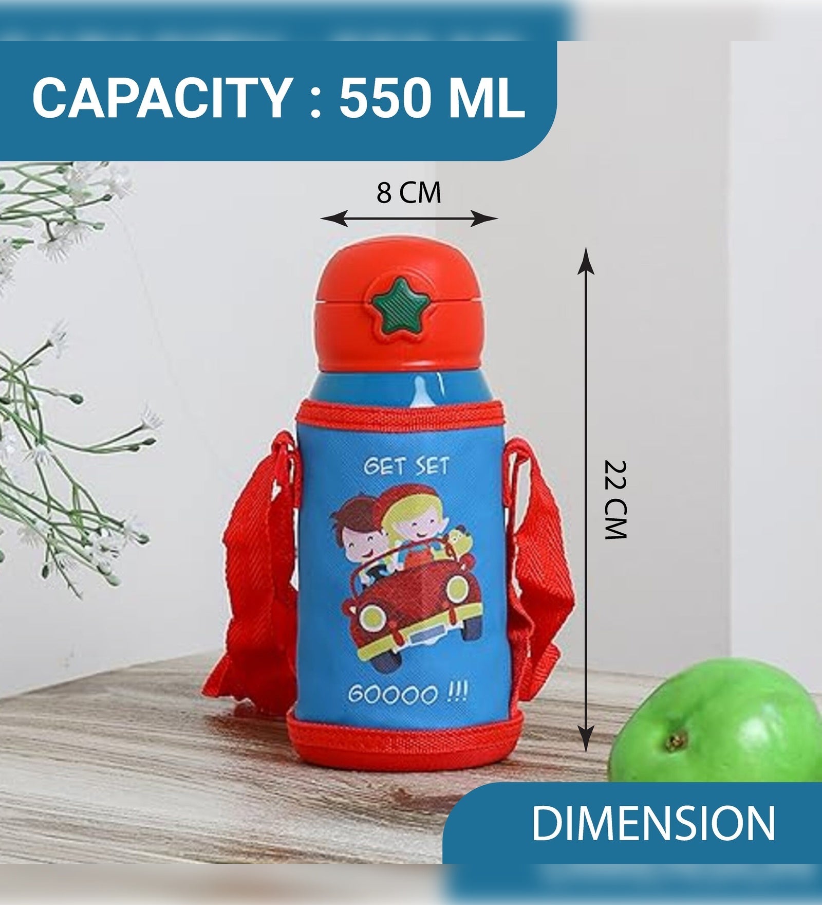Stainless Steel Kids Get Set Go Design Hot & Cold Thermo Steel Blue Water Bottle, 550 ML, Femora