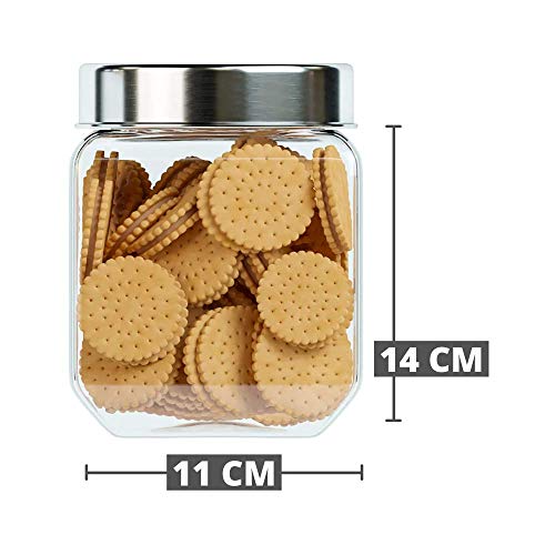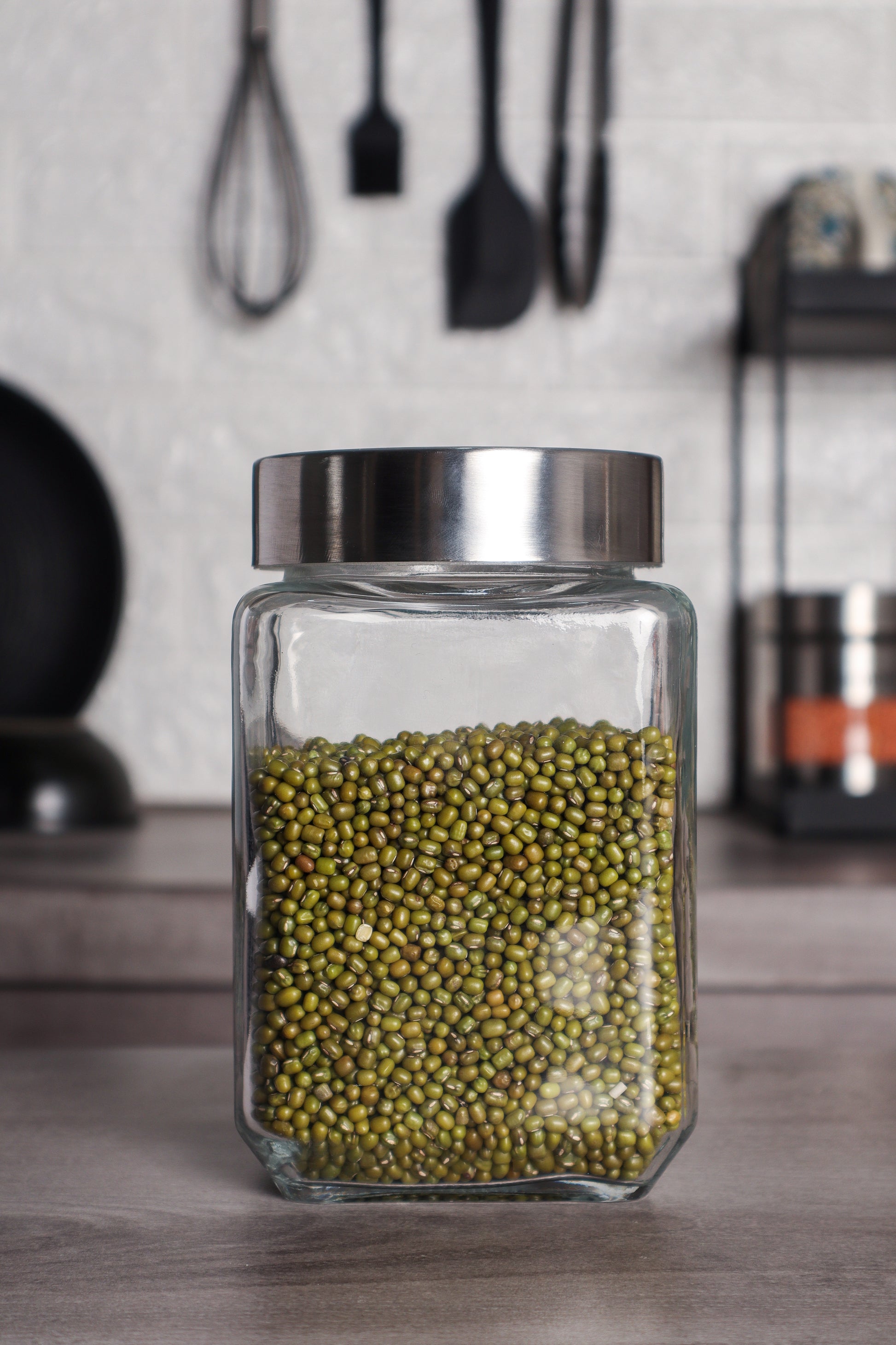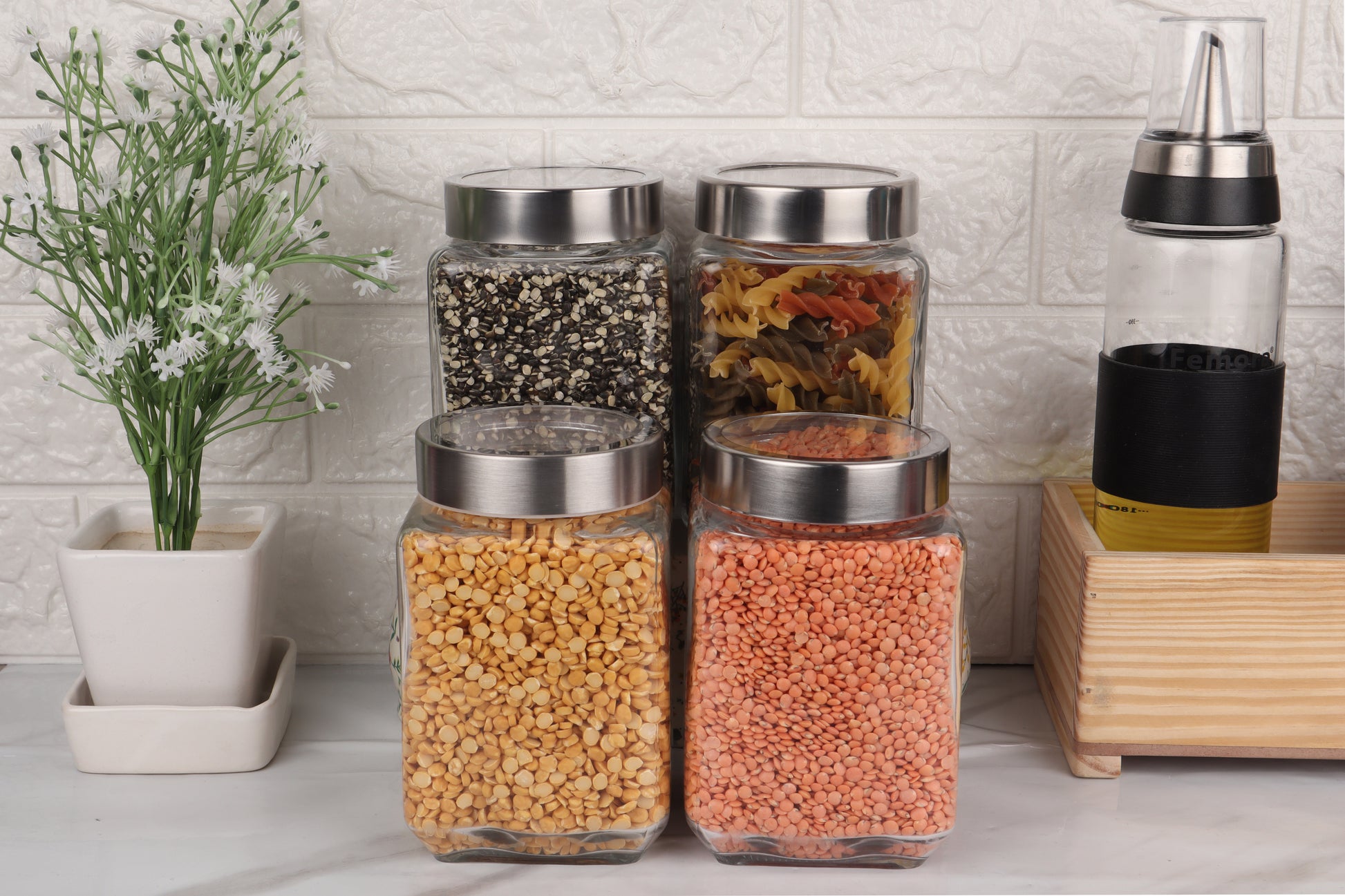 Material :- Clear Glass Jars Lid:- Stainless Steel Air Tight Lid.