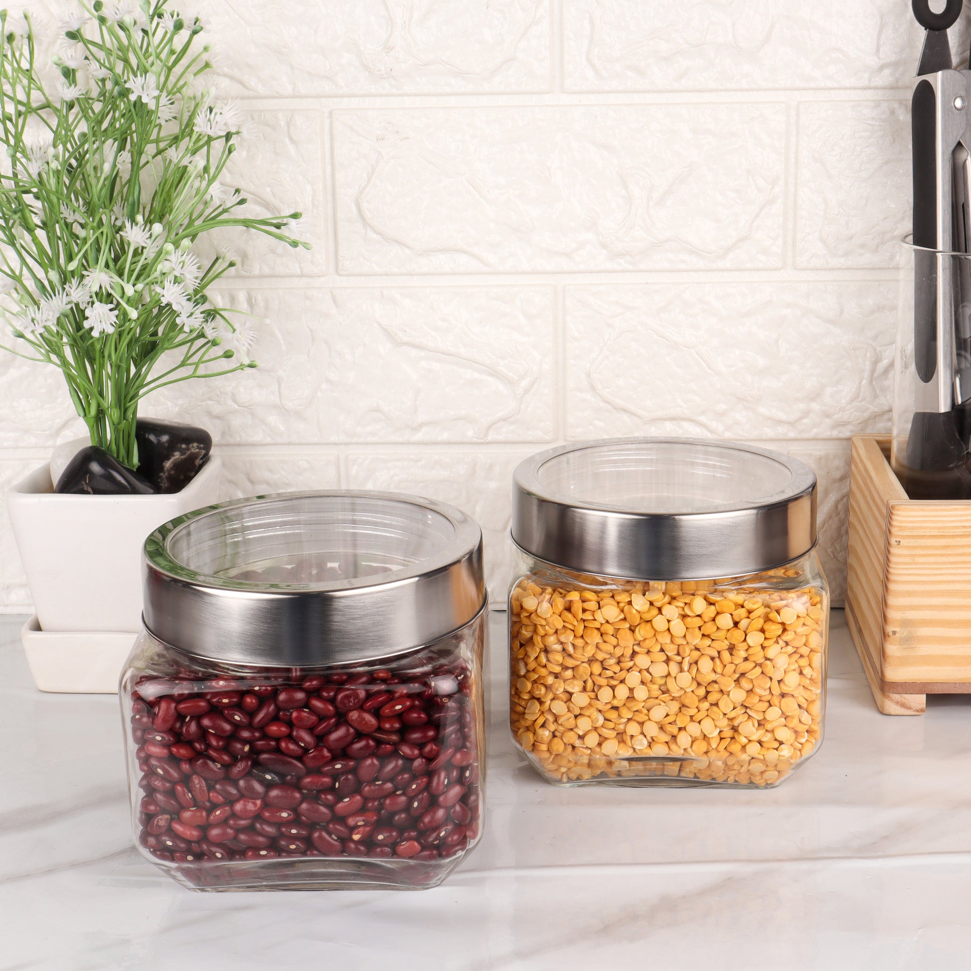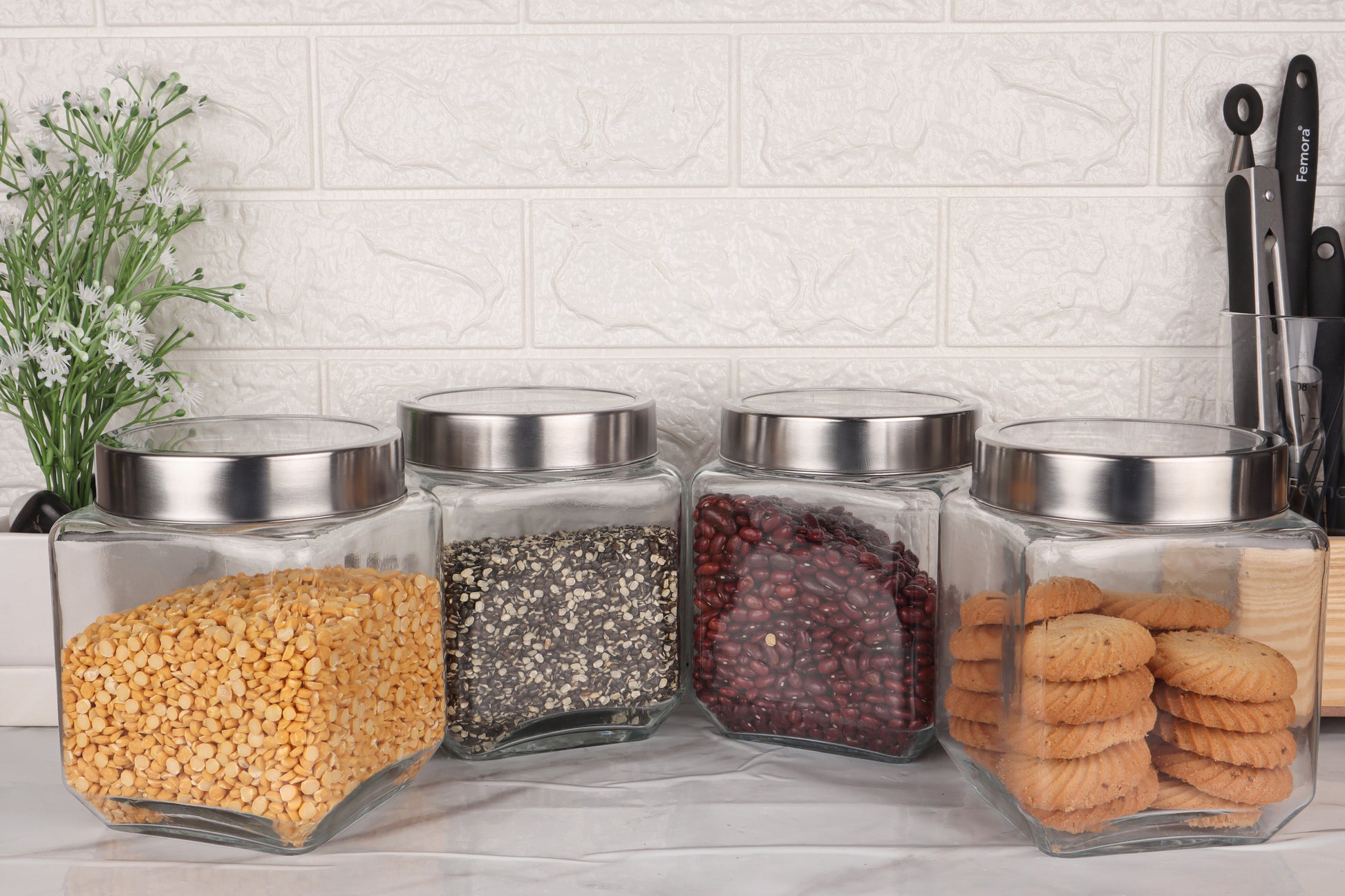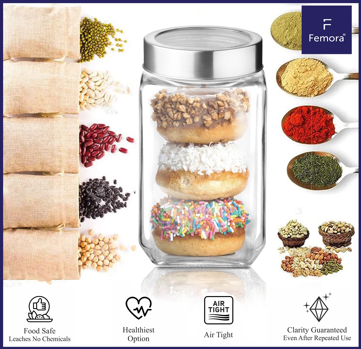 Kitchen Storage Jars Transparent Glass With Steel Lid Air Tight Jar Femora