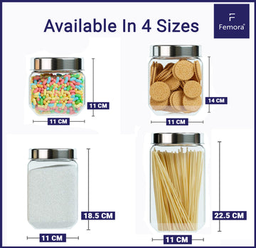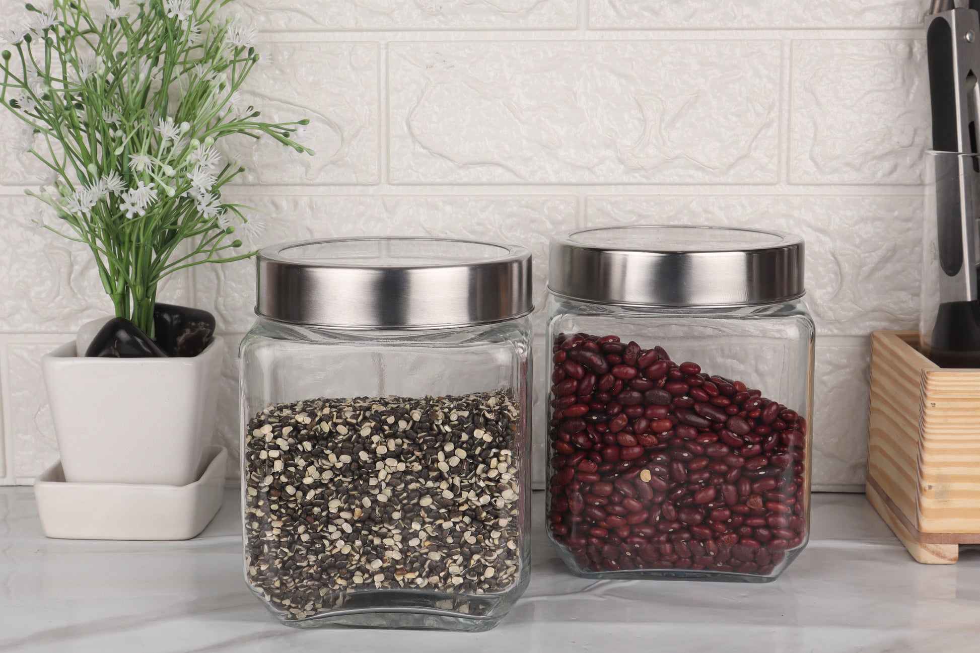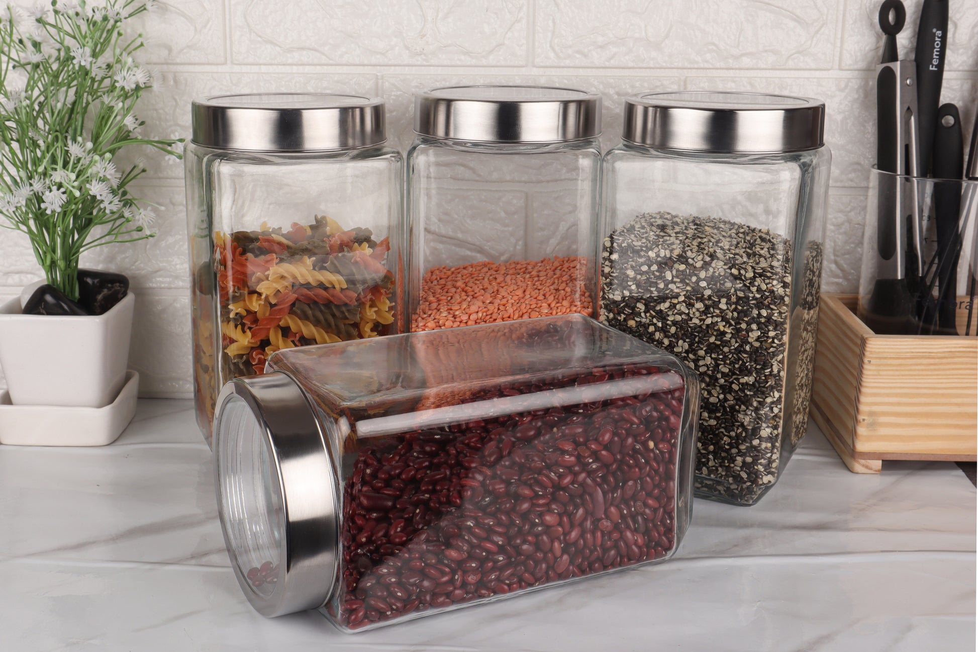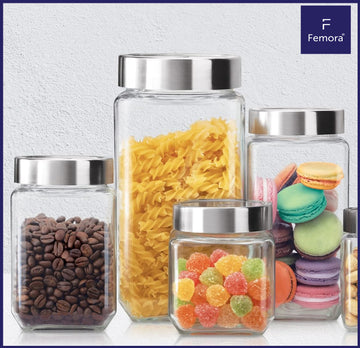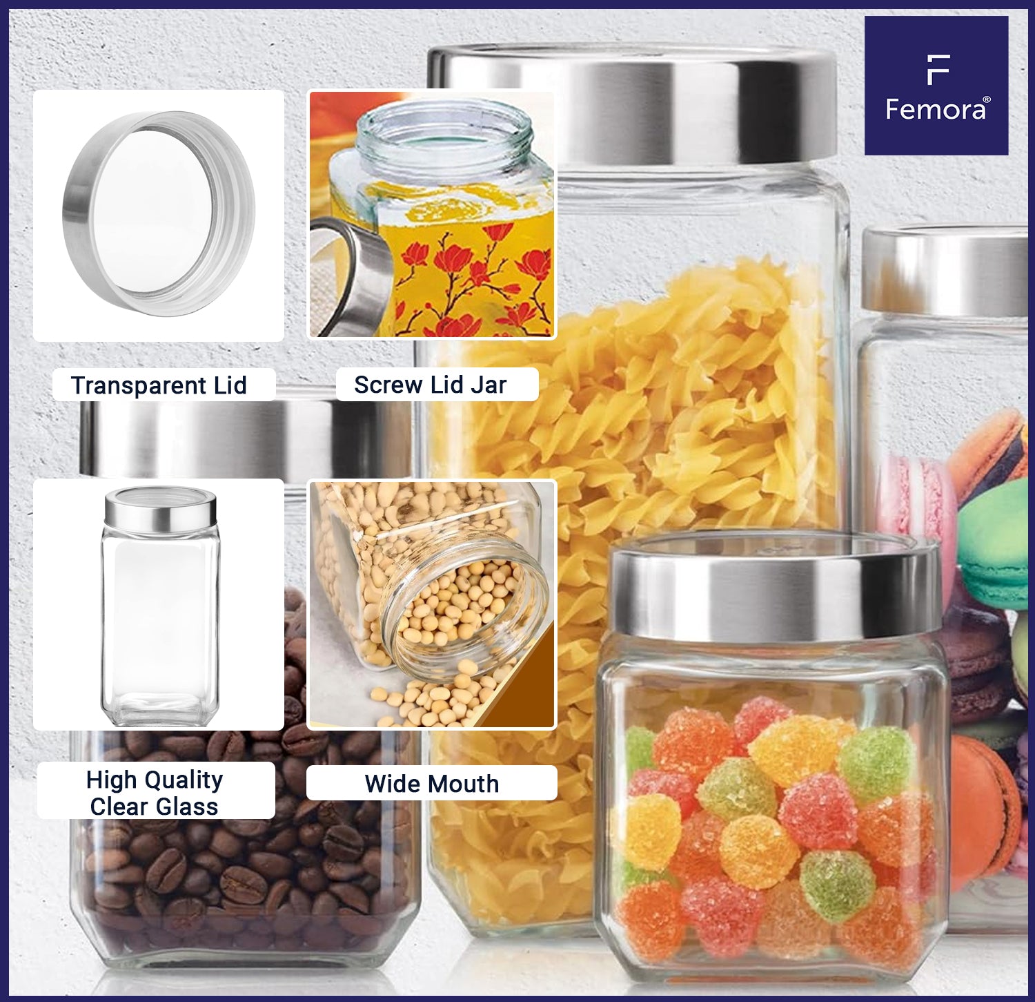 Kitchen Storage Jars Transparent Glass With Steel Lid Air Tight Jar Femora