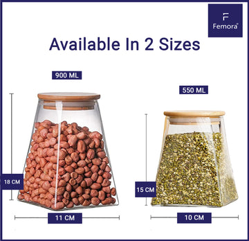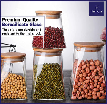 Material :- Borosilicate Glass Jars Lid: Wooden Air Tight Lid.