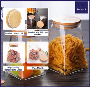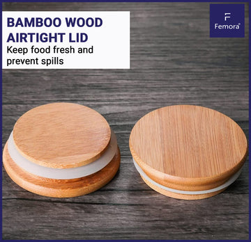 Kitchen Storage Jars Borosilicate Glass With Wooden Lid Air Tight Jar Femora