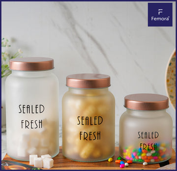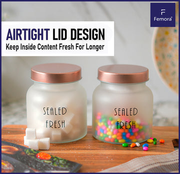 Kitchen Storage Jars Frosted Jar With Steel Lid Air Tight Jar Femora