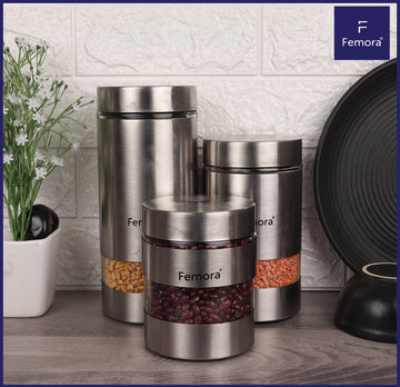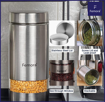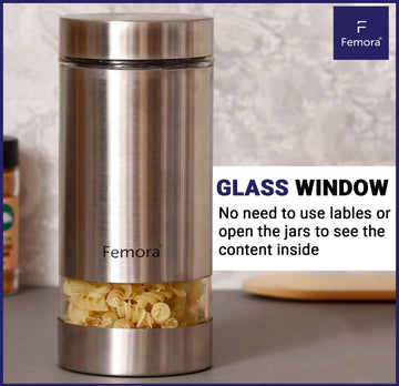 Kitchen Storage Jars Steel Body With See Through Window Jar Femora
