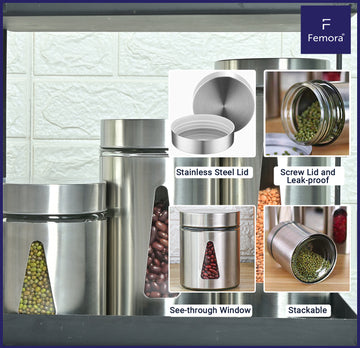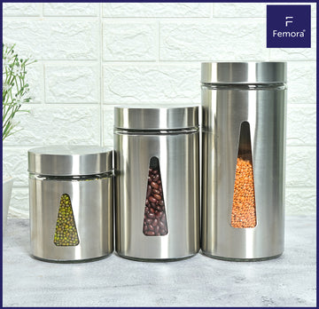 Kitchen Storage Jars Steel Finish With See Through Window Jar Femora