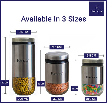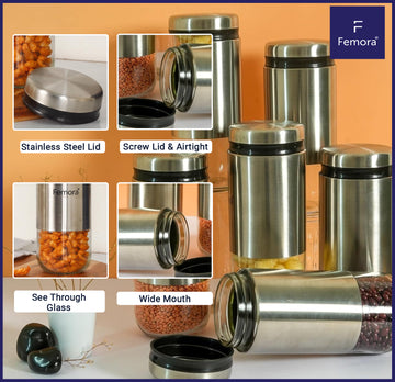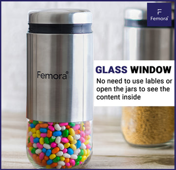 Kitchen Storage Jars Steel Body With See Through Bottom Jar Femora