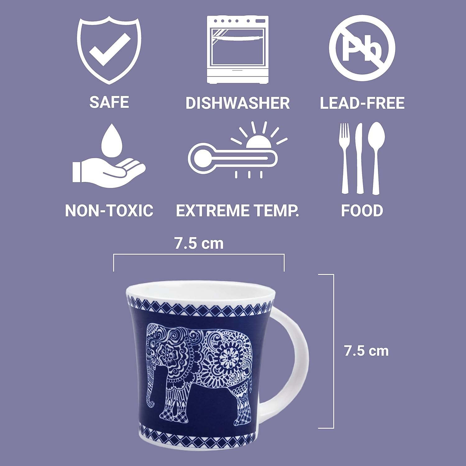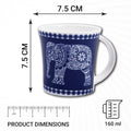 Majestic Elephant Ceramic Coffee & Tea Cup Set of 4, 160 ML, Blue
