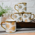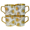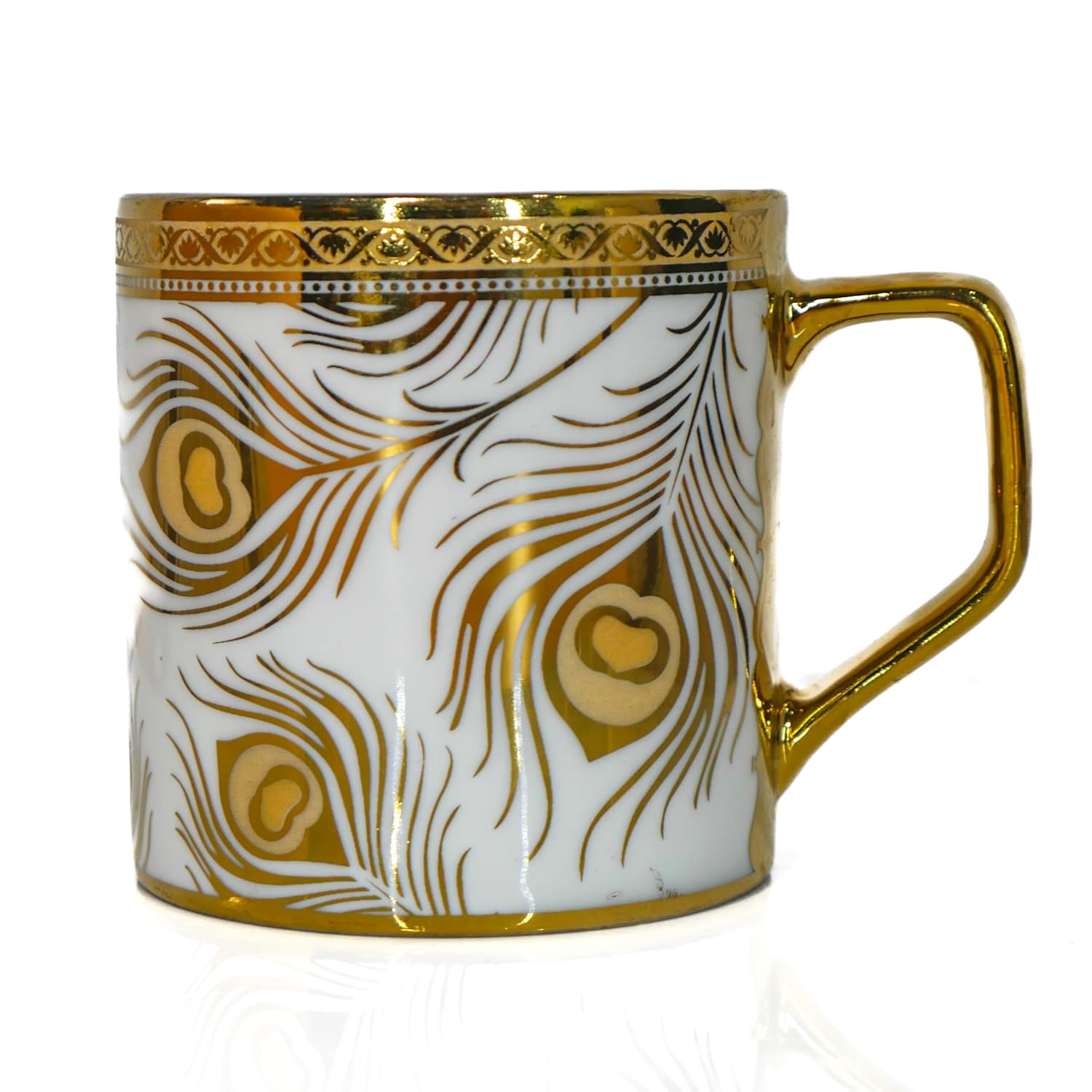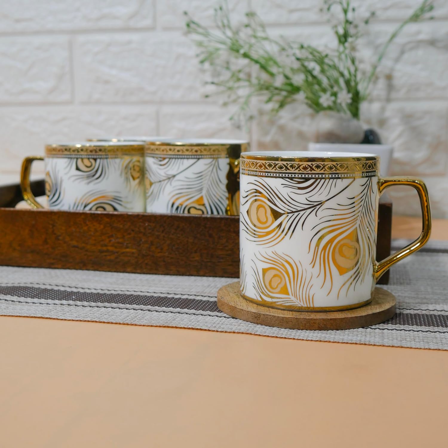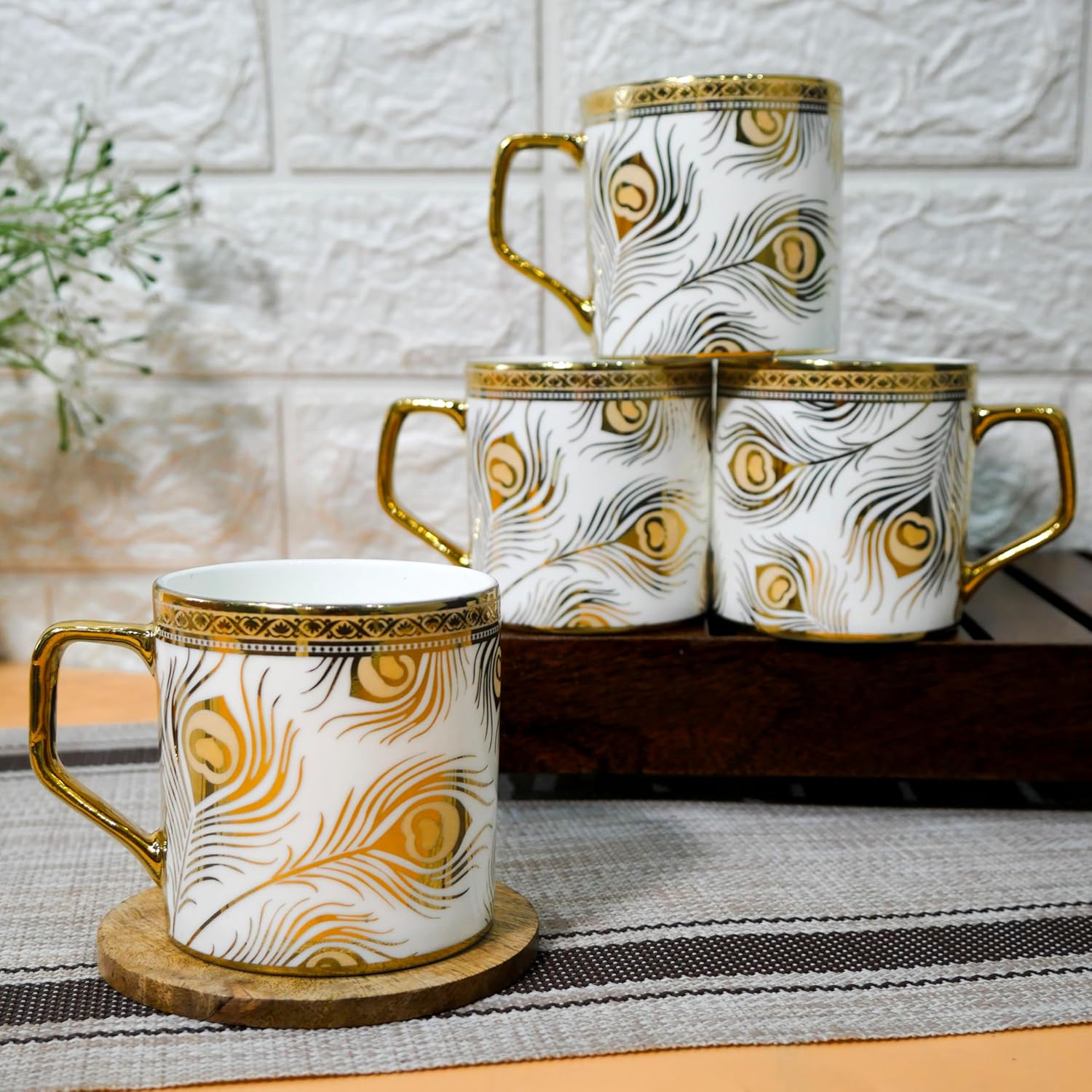 Premium Golden Peacock Feather Pattern Design Ceramic Coffee & Tea Cup Set of 4, 180 ML