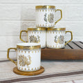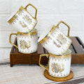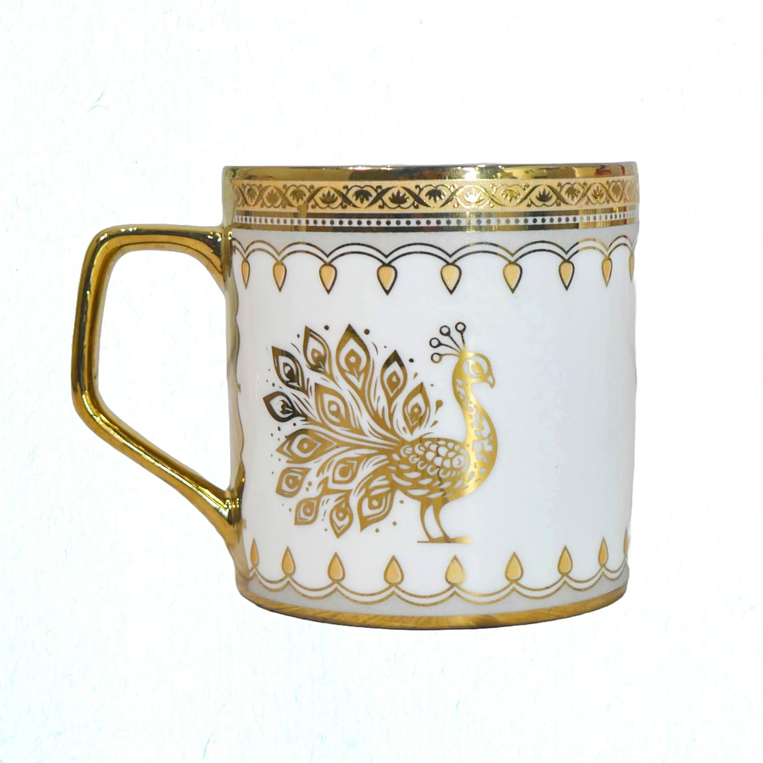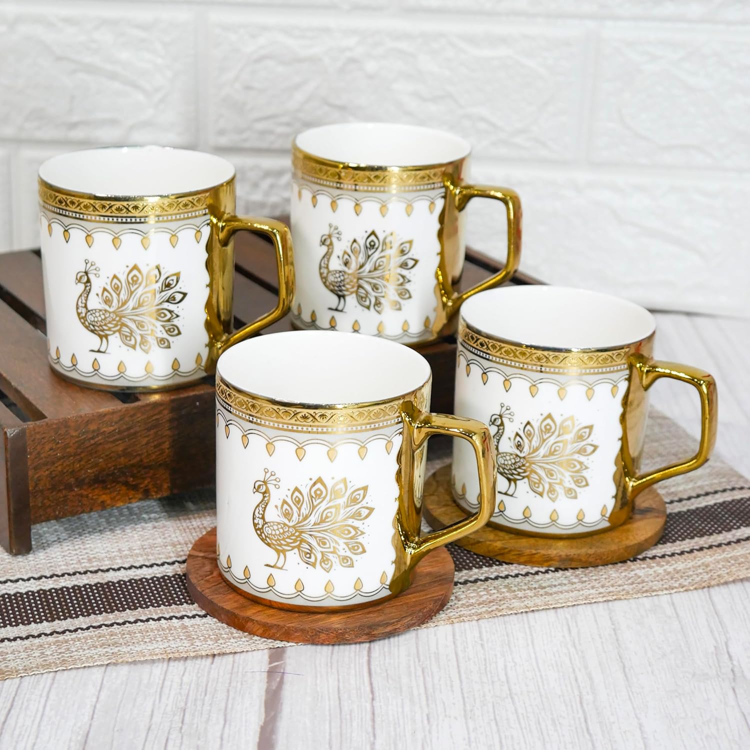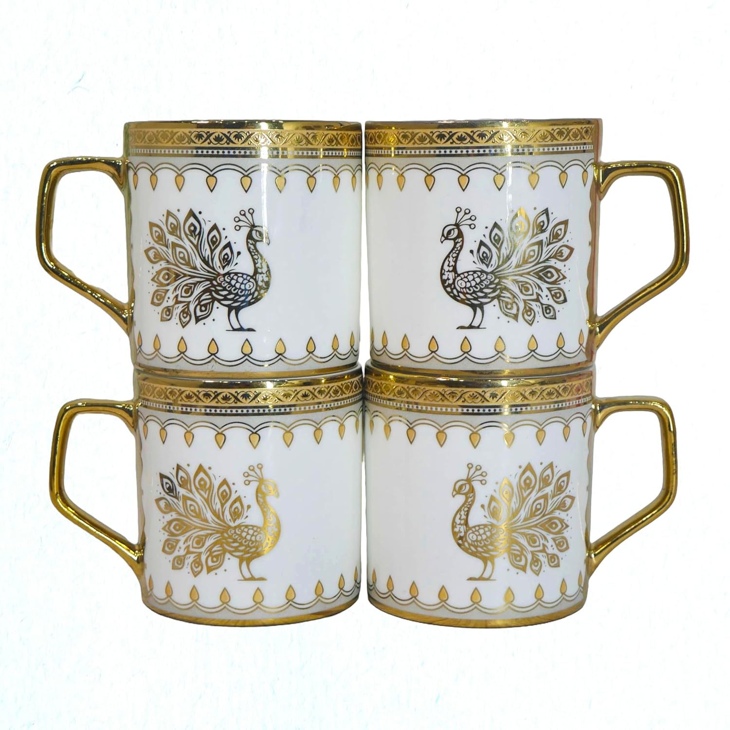Premium Peacock On White Design Ceramic Coffee & Tea Cup Set of 4, 180 ML